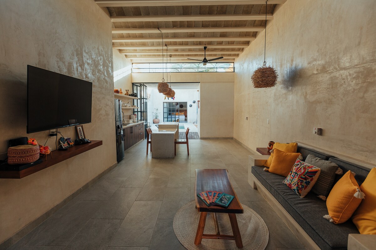 Es una hermosa casa ubicada en la avenida principal que llega de Cancun a Merida, casa tranquila y segura a una cuadra del monumento "la Cruz de Galvez", a pocas calles del mercado de Lucas de Galvez, centro historico, restaurantes, galerías de arte y prolongacion Montejo. El diseño está inspirado en la cultura maya con materiales de la región de Yucatán y cuenta con piezas de artesanos. Sé parte de Mango 65 y disfruta tu estancia en Mérida.