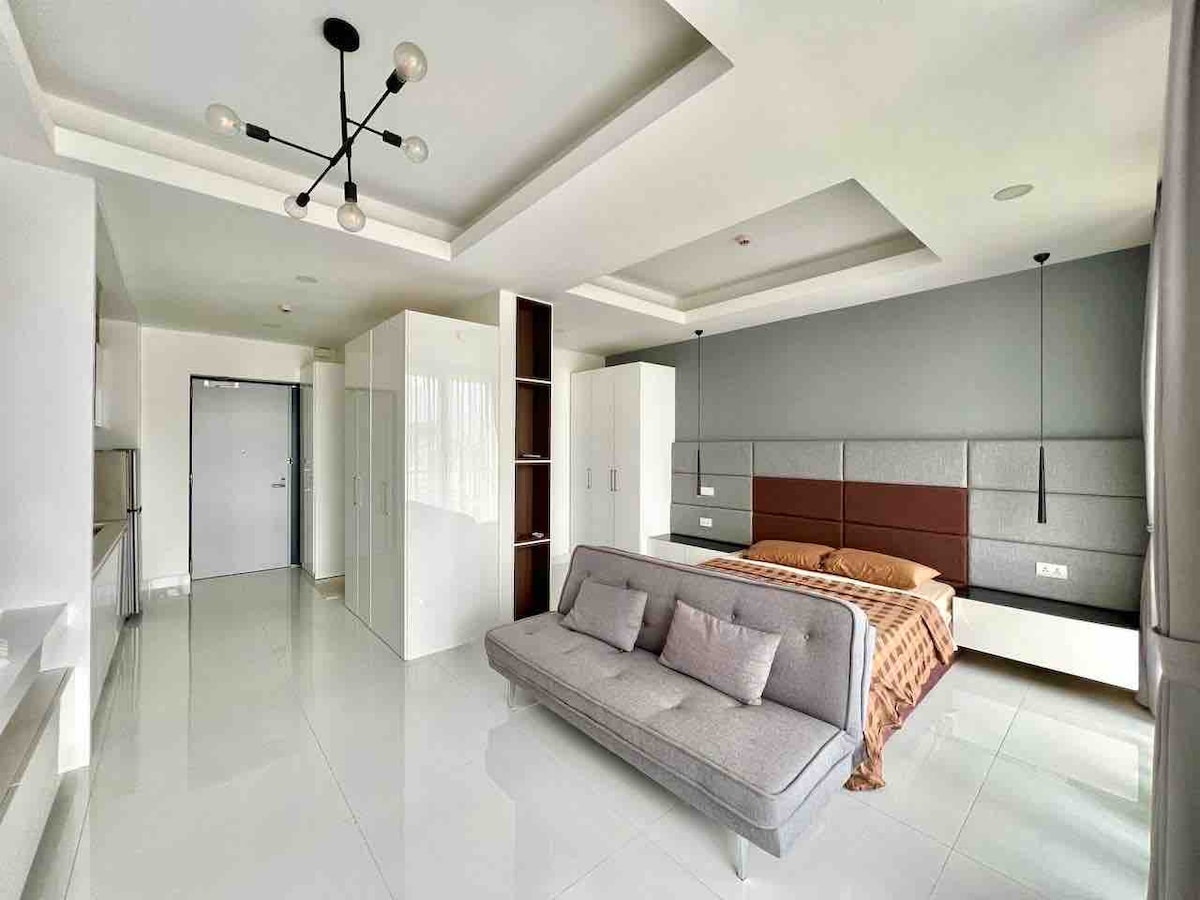 Superbe Studio 入住我們精美的單間公寓,體驗位於曼谷1號Chamkarmorn中心的奢華生活。享受功能齊全、設計精美的佈局,配備高端裝潢和設備與服務。房源設有迷人的無邊際屋頂泳池,是放鬆身心和欣賞城市景觀的完美場所。 公寓位於黃金地段,可輕鬆前往所有充滿活力的BKK1區域。立即預訂住宿,讓您的旅程更上一層樓