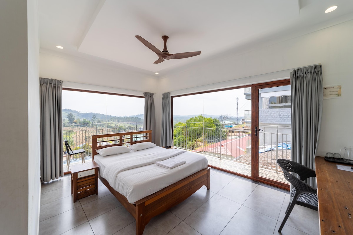 您想探索的一切都在這個地方外面。 在這個高樓層(無電梯)雙人房放鬆身心,有一個私人陽臺,可俯瞰Munnar的綠色草地。 配有附設浴室和Wi-Fi、安卓電視、熱水、盥洗用品和毛巾等設備與服務。 距離Munnar巴士站僅300米,步行即可抵達城鎮充滿活力的氣氛,靠近所有活動–餐廳、香料和巧克力商店以及熱門目的地。