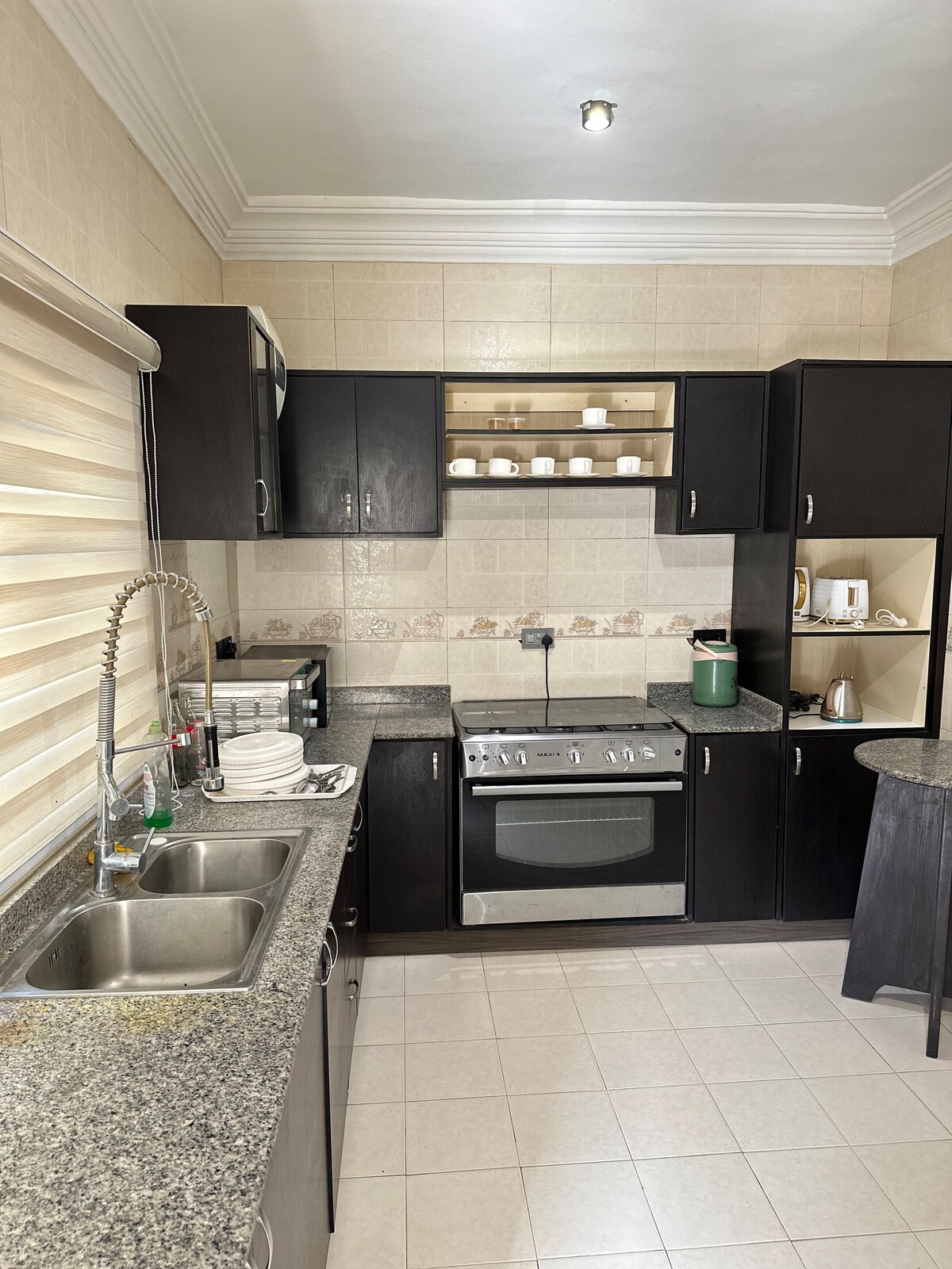 Prestige房源提供1間臥室,但可解鎖2間臥室,可供1位額外房客或2位青少年入住,需支付額外費用。 在Kano這個獨特且適合家庭入住的地方留下一些回憶。 如果您需要一個獨特的住宿,並仍然感覺像在家裡 享受由變頻器和發電機提供的24小時電源。 設備廚房 洗衣機 配有智慧電視的客廳/餐廳 配有LED螢幕和印表機的工作站 微波爐 冰箱 4個燃燒器瓦斯爐,配有烤箱 臥室1有特大床;臥室2有大床。