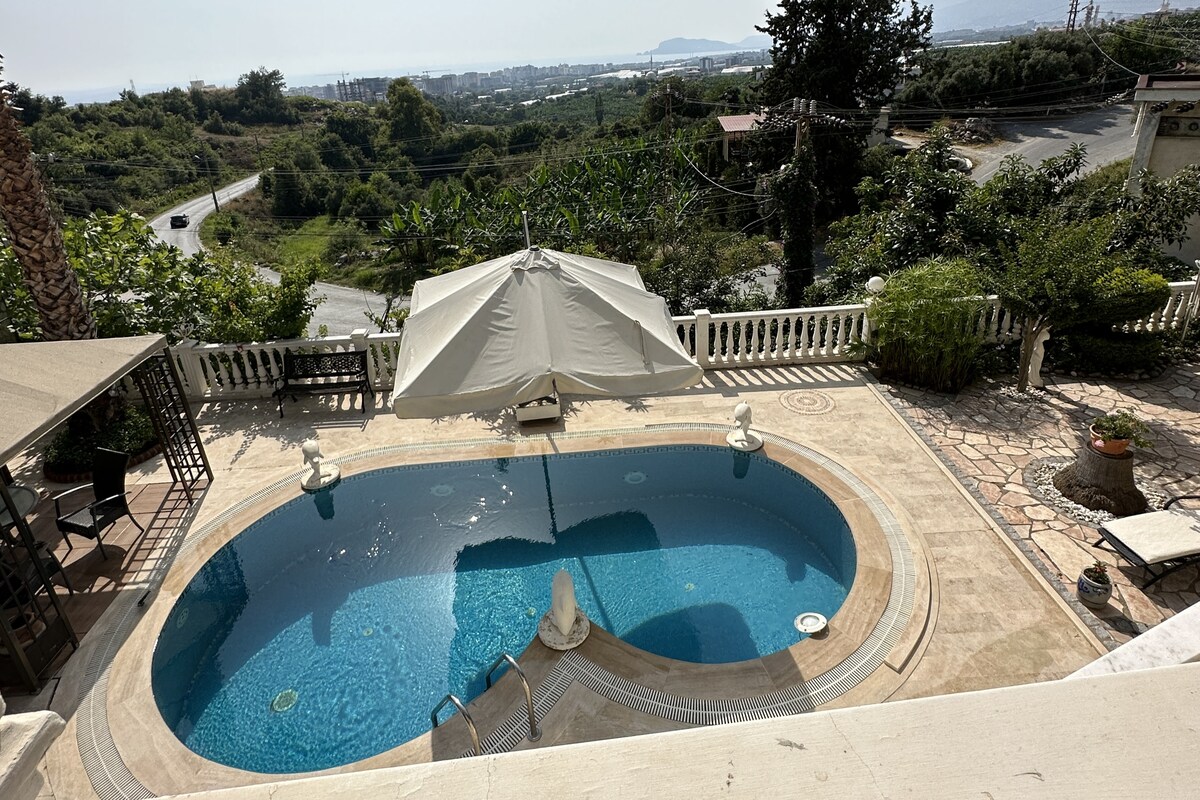 Bu huzurlu konaklama yerinde ailece dinlenebilirsiniz.Villamız özel havuzlu ve özel bahçelidir.Aynı anda harika deniz ve dağ manzaralıdır. Villamızda Sauna bulunmaktadır. Villamızdan aynı zamanda güneş batımını çok güzel izleyebilirsiniz. Alanya şehir ve Kale manzara net olarak izlenebilir