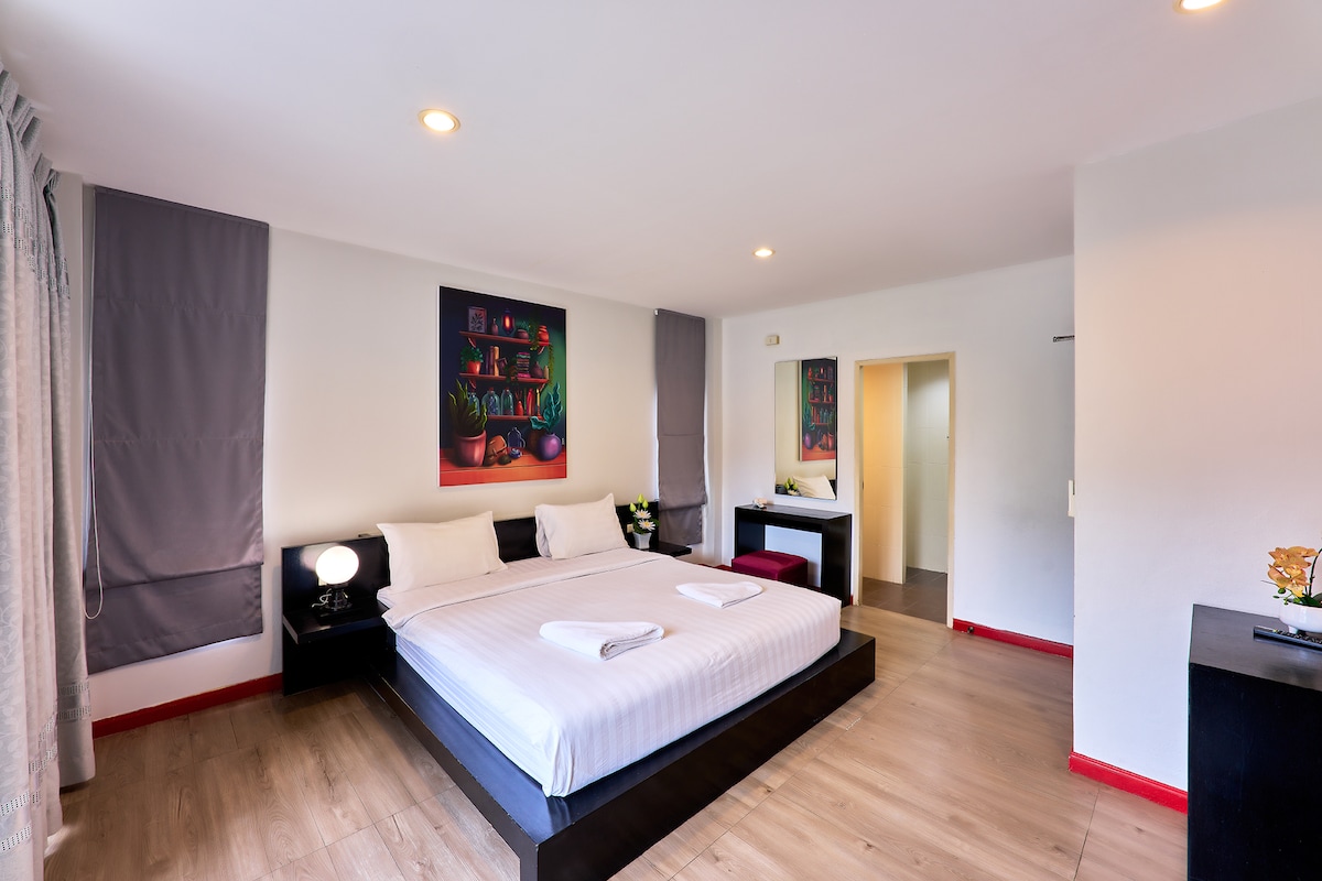 這間寬敞的臥室四周環繞著熱帶花園,環境安靜祥和。這是一個四臥室客用住房的一部分,位於美麗的橡膠樹林邊緣,是想在普吉島拉威(Rawai)親密入住的家庭和朋友的理想位置。大型游泳池、酒吧區、室外休息室和遊戲室也可使用。包含歐陸早餐。放鬆身心的完美去處,享受泰國的好玩新鮮事。