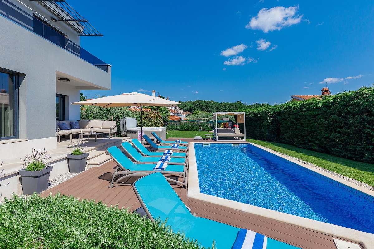 Villa Grande 是一座新的度假別墅,坐落在一個安靜的村莊,為我們的客人提供必要的放鬆和休息,遠離日常的忙碌生活,滿足所有入住客人的需求,客人擁有私人房間,配有私人廁所和通往私人露臺的通道,可俯瞰泳池。我們期待您來到我們的別墅 Grande,您一定會享受它,作為您的主人,我們將竭盡全力讓您和您的家人放鬆身心。歡迎!Brcic 家族