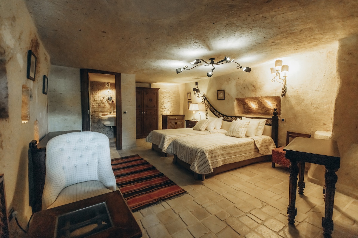 卡帕多奇亞市中心難忘的住宿體驗 我們的飯店融合了傳統的卡帕多西亞石頭建築和現代舒適性,提供客房和優質服務,以滿足每位房客的需求。 在我們的天然石頭房間裡,您可以遠離城市的喧囂,享受寧靜的假期。 每個房間都有陽臺,可欣賞卡帕多奇亞的獨特景觀、舒適的牀鋪、裝飾有溫暖色彩的室內裝飾和現代化設施。