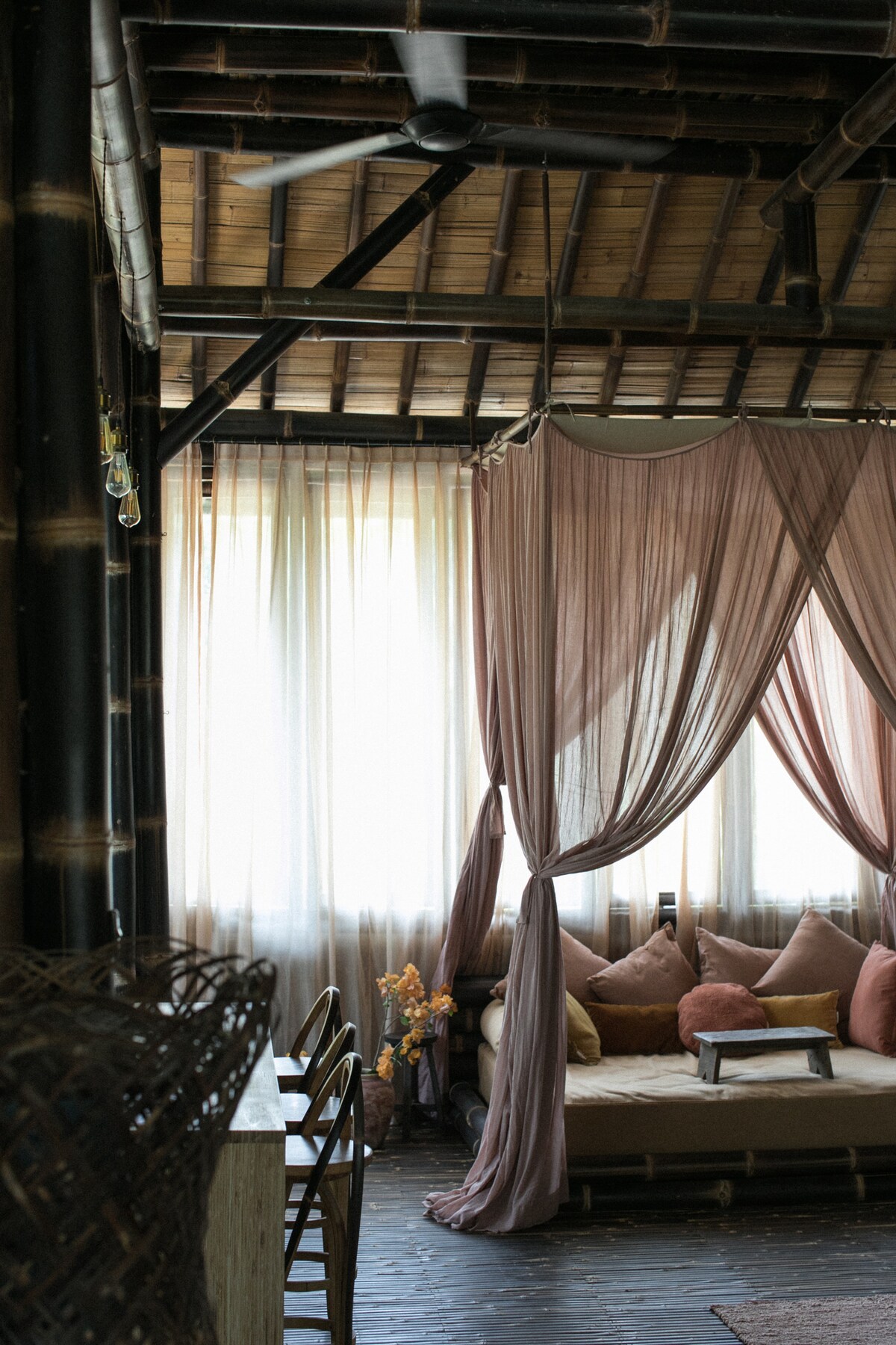 Wahem Luanan是適合居住的竹屋之一,可欣賞稻田和河流的美景。 設計獨特,這裡幾乎所有的家具都是用竹子製成的,甚至包括小東西。 我們以前考慮過設計和構造, Wahem Luanan已經適合居住。 Wahem Luanan遠離城市的喧囂,我們不是豪華飯店,這種體驗真的很冒險,你會享受非常美麗的農村氛圍。