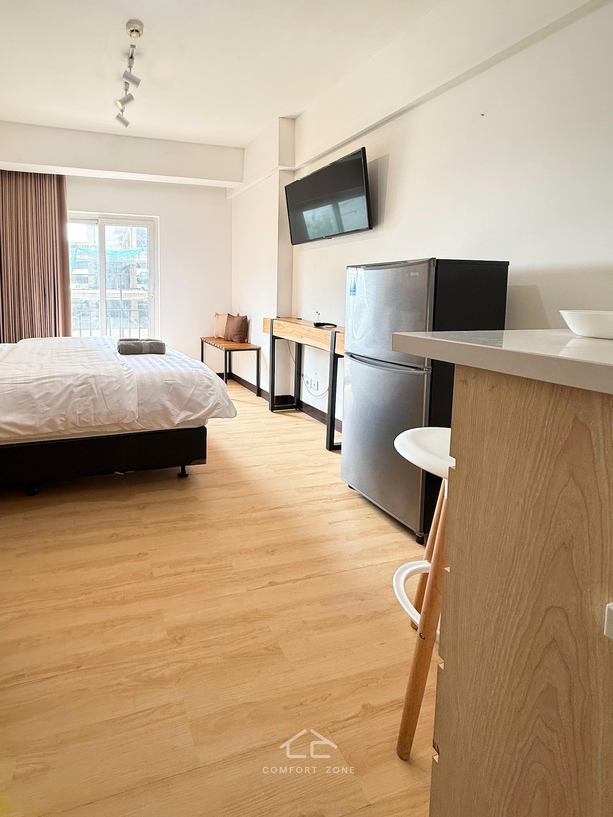 全新1居室日式简约风公寓,位于Menara Jakarta,距离JIExpo Kemayoran仅150米!坐落于雅加达市中心,11分钟到JIS,20分钟到Grand Indonesia,5分钟即可上高速公路。公寓配备一张Queen大床、2台空调、WiFi、小厨房、50寸Google电视、浴室和厨房热水器。享受游泳池、景观健身房、休息室、共享工作空间、篮球场、网球场、儿童游乐场等设施。最多可接待2位客人。
