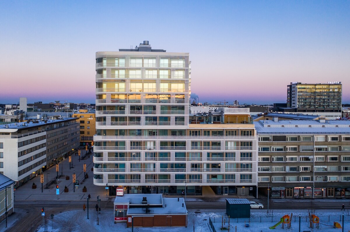 This spacious 8th floor apartment on top of the Valkea shopping centre offers perfect accommodation for your stay. All city services are right next to the apartment and also accessible by elevator through parking hall. Very spacious balcony with windows facing south also offers you the possibility to enjoy warm evenings with a great view.