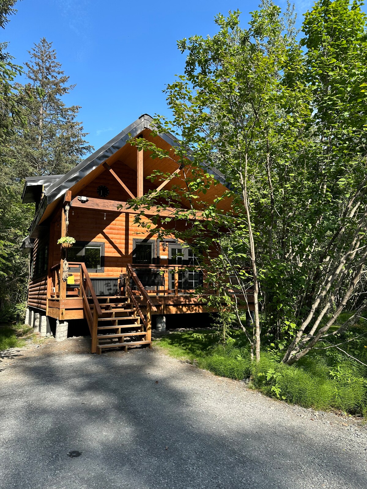 歡迎來到Clear Creek Cabin,距離Seward僅5分鐘。小屋面積為800平方英尺,有2間臥室( 1張加大雙人床/1張雙人床),沙發可拉出成為床,或者我有雙人記憶泡綿床,可供第5人使用。有帶淋浴間的浴室和設備齊全的廚房、洗衣機/烘乾機、配有智慧65英寸電視的客廳區域和WiFi。 前面有帶燒烤和營火設施的遮蔽露臺。