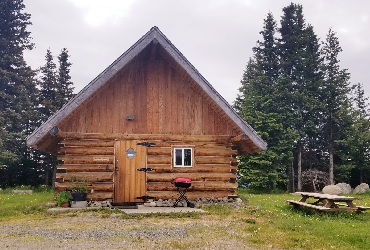 位於荷馬外18英裏處。 手工建在牧場上,採用我家狩獵小木屋的風格;還有一些最後的細節。 這間小木屋提供全套廚房、浴室、淋浴間,配有電燈和油加熱器,而不是氣質木爐。 我們的區域可欣賞Kachamack灣、我們的小牧場和牡丹農場的壯麗景色。 請注意,手機服務可能會在您到達小木屋前幾英裏下車。 請參閱此房源的「空間」部分的更多內容。