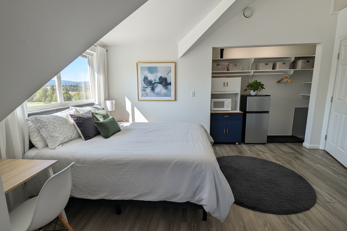 1200平方英尺的市中心瑰寶! 重新裝修~美麗、現代、開放的概念。 對面是市中心最時尚的市場、麵包店和咖啡店。方便享用早餐咖啡和糕點或烤肉的新鮮鮭魚。步行5分鐘即可抵達Westchester Lagoon、海岸步道和Chester Creek步道。步行15分鐘即可抵達市中心;購物、自行車租賃、博物館、城鎮廣場餐廳和夜生活。 街外有遮蔽的停車位。開車前往機場需10分鐘。