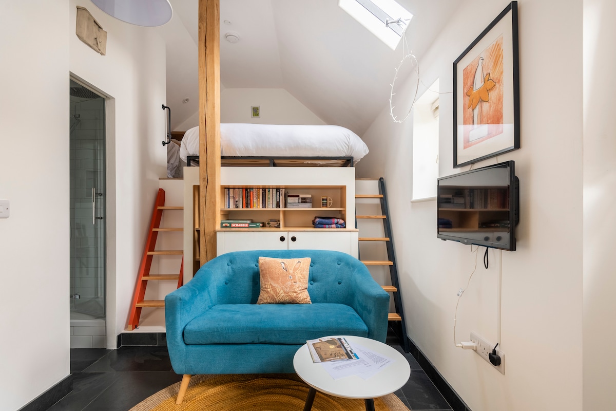 乾草閣樓非常舊,但我們已將其改造成2床套房(一張雙人床和一張大圓床在夾層),配有「棚屋浴室」和一個大休息室。它位於我們自己房子的一部分(廚房上方) ,但有獨立的私人入口和通往花園的門。沒有廚房設施-想想飯店房間,而不是自助餐廳!它位於村莊的中心,距離好的餐廳、古老的酒吧和獨立商店幾百公尺。