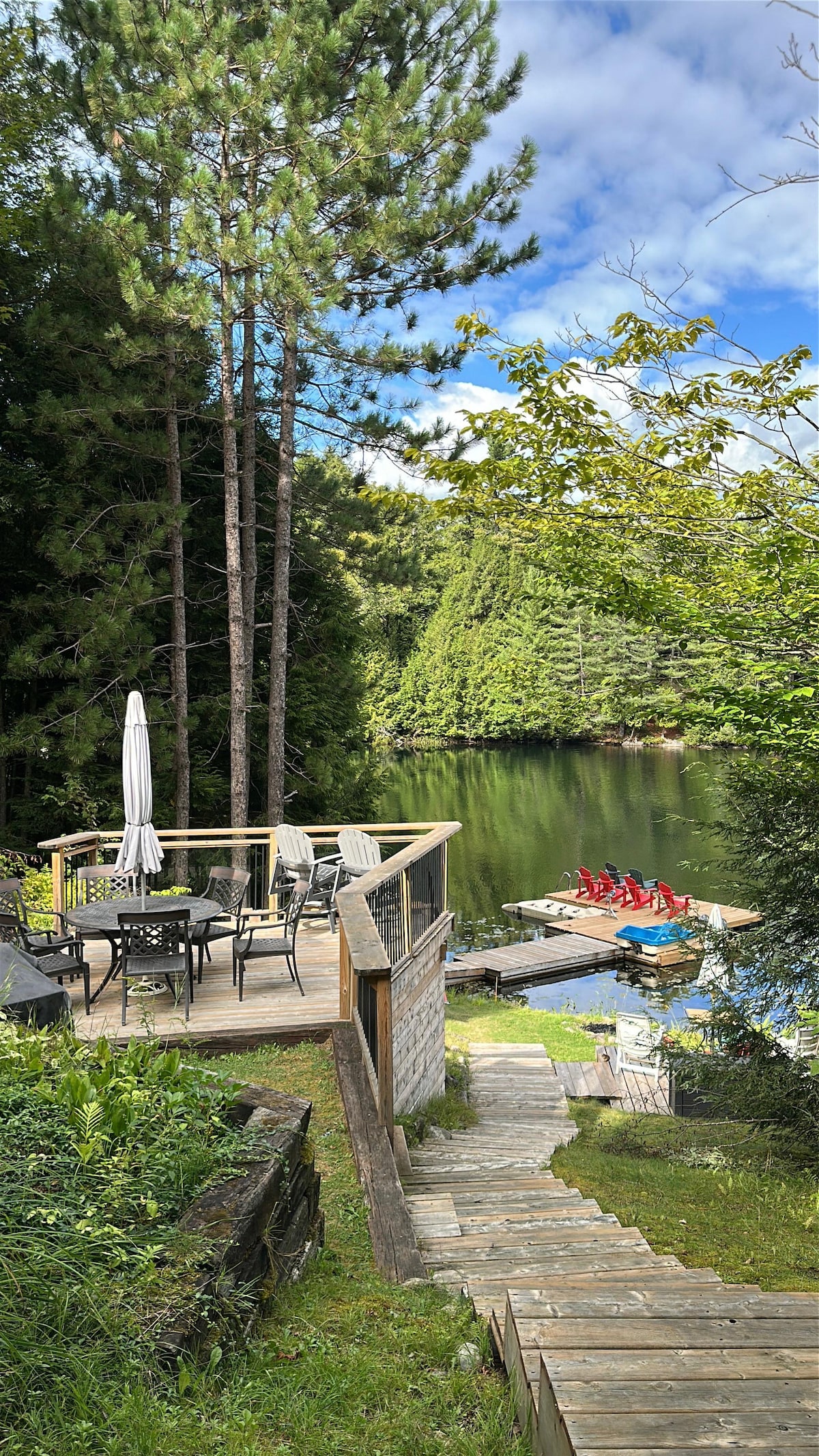 位於哈利伯頓高地( Haliburton Highlands )的湖畔、三角屋、四季小屋,前往哈利伯頓( Haliburton )很方便。 室內 ➤ 落地窗( 20英尺以上) 3間臥➤室- 1張加大雙人牀、2張加大雙人牀 ➤ 壁爐(提供木材) ➤ 設備齊全的廚房 提供牀➤單 ➤ 穩定的網路 戶外 ➤ 有螢幕的湖景門廊 6 人座➤桑拿 ➤ 營火坑 - 提供木柴 ➤ Weber BBQ 在我們的40英尺碼頭遊泳和釣魚➤很棒 我們的價格包含合併銷售稅。 距離大多倫多地區 2.5 小時,位於隆湖/米斯夸比湖