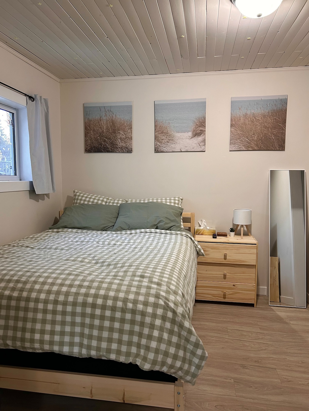 This one bedroom ground level lakeside apartment is decorated in beach decor. Representative of beautiful Northwestern Ontario. Located on the shore of Pelican Lake in Sioux Lookout. The suite is ideal for an individual, a couple, or a small family, we have a cot for one small child. Full kitchen, living room, Wifi, outdoor space and barbecue. Breakfast food and coffee provided for short stays Walk out ground level entrance, lake side. Guests have access to the lake and dock.