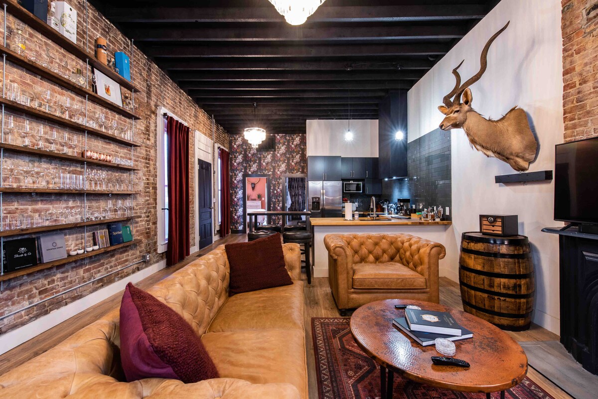Rickhouse:專為存放和熟成蒸餾烈酒而設計的建築。 Rickhouse 的誕生源自對優質烈酒的熱愛,以及一個想法:一個家應該要擁有製作完美雞尾酒的所有材料。這間酒吧擺放著 Chesterfield 皮革座椅、各式各樣的雞尾酒杯、可調節的 4 層雪茄櫃,以及以烈酒為主題的藝術品,將舒適與獨特完美結合。 乾杯,享受Rickhouse!