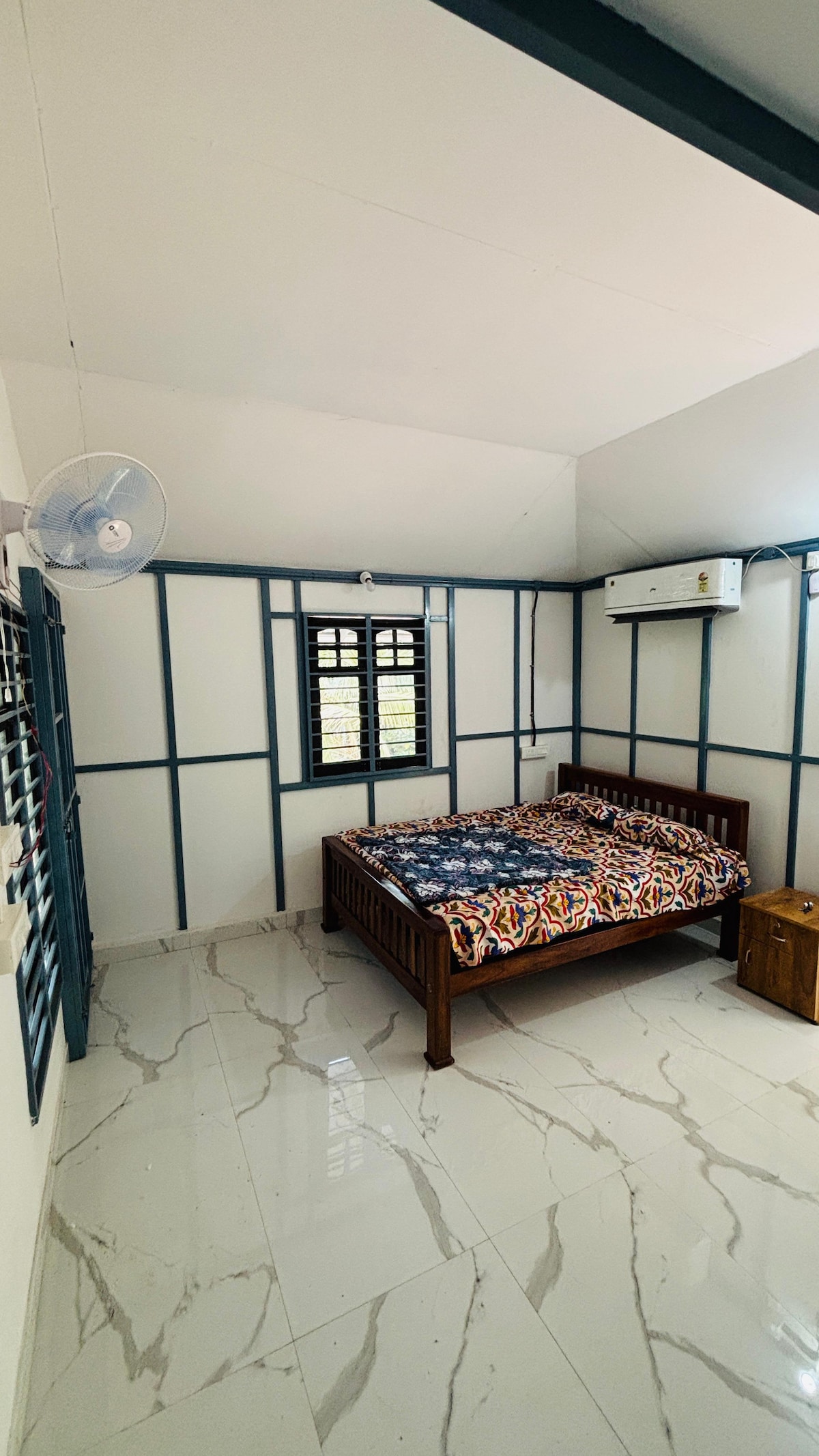 Enjoy the cool sea breeze and bask in the morning sun at The Island house Kochi. The sprawling homestay has 2 bedrooms (Both Airconditioned) which can accomodate 6 pax (Two extra beds will be provided for the extra two guests) is close to Kochi and has a touch of Kerala peeking through its decor. The 1920s styled retro staircase is a beautiful blast from the past. Tastefully done bedrooms with poster beds, wooden furniture and elegant wallpaper decors, adds a touch of royalty to the ambience.