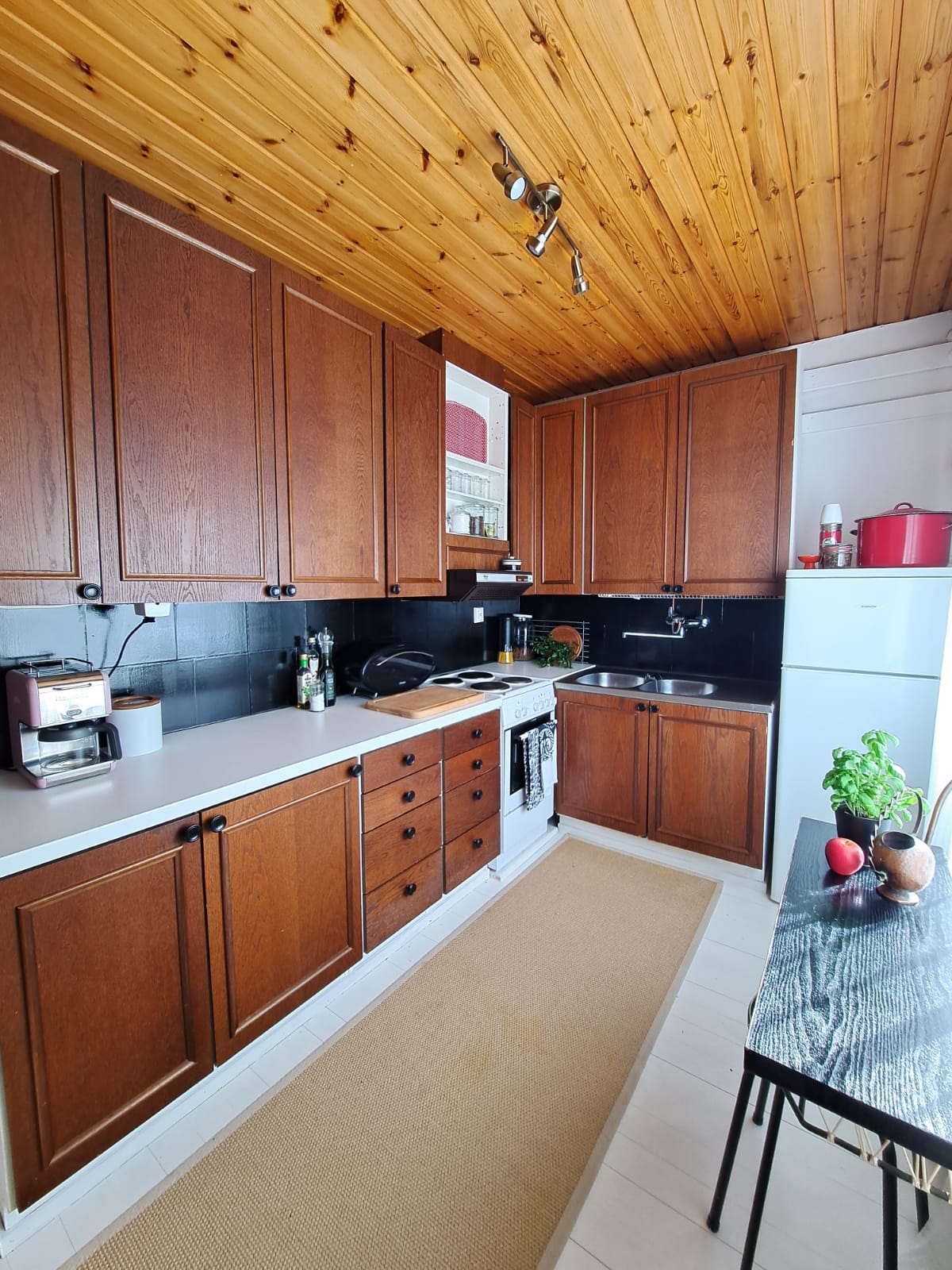 Majoitu keskellä Kiteetä, torin kulmalla, kaikki palvelut on kävelymatkan päässä. Talo on 50-luvulta ja sisustus 90- luvulta. Makuuhuoneessa parisänky ja olohuoneessa kaksi 80 cm sänkyä. Lisävuodemahdollisuus kahdelle 10cm patjoilla.Keittiö on retro nykyaikaisilla koneilla kuitenkin.Wc pieni mutta puhdas ja siisti. Suihkutilat on alakerrassa, yhteiset toisen huoneiston kanssa, lukittava ovi. Puuvillaiset Marimekon vuodevaatteet ja pyyhkeet pestään hajustamattomalla pesuaineella ja mankeloidaan.