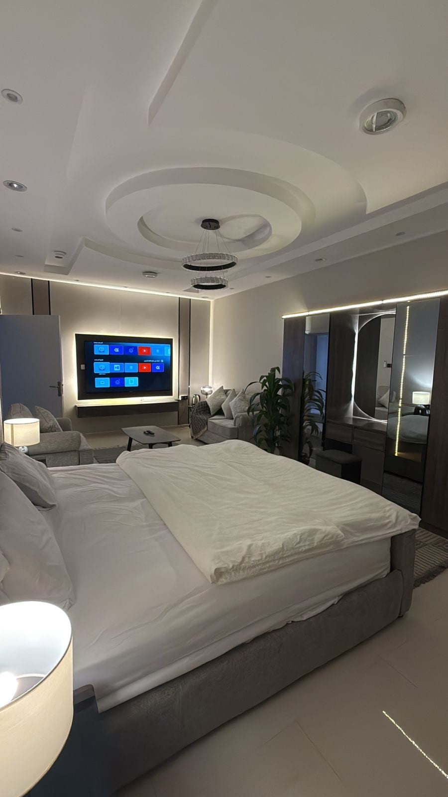 豪華飯店的屋頂住宿 🙏🏼🤍 - 公寓有獨立入口 - 2間寬敞的臥室 - 獨特的大廳,可眺望戶外庭院 -安靜的戶外座位 - 公寓專用電梯 -可根據需要加床 -靠近大道和Reem Park的特殊地方,開車不到兩分鐘,周圍有許多咖啡廳和餐廳 這個街區的特色是完全的寧靜