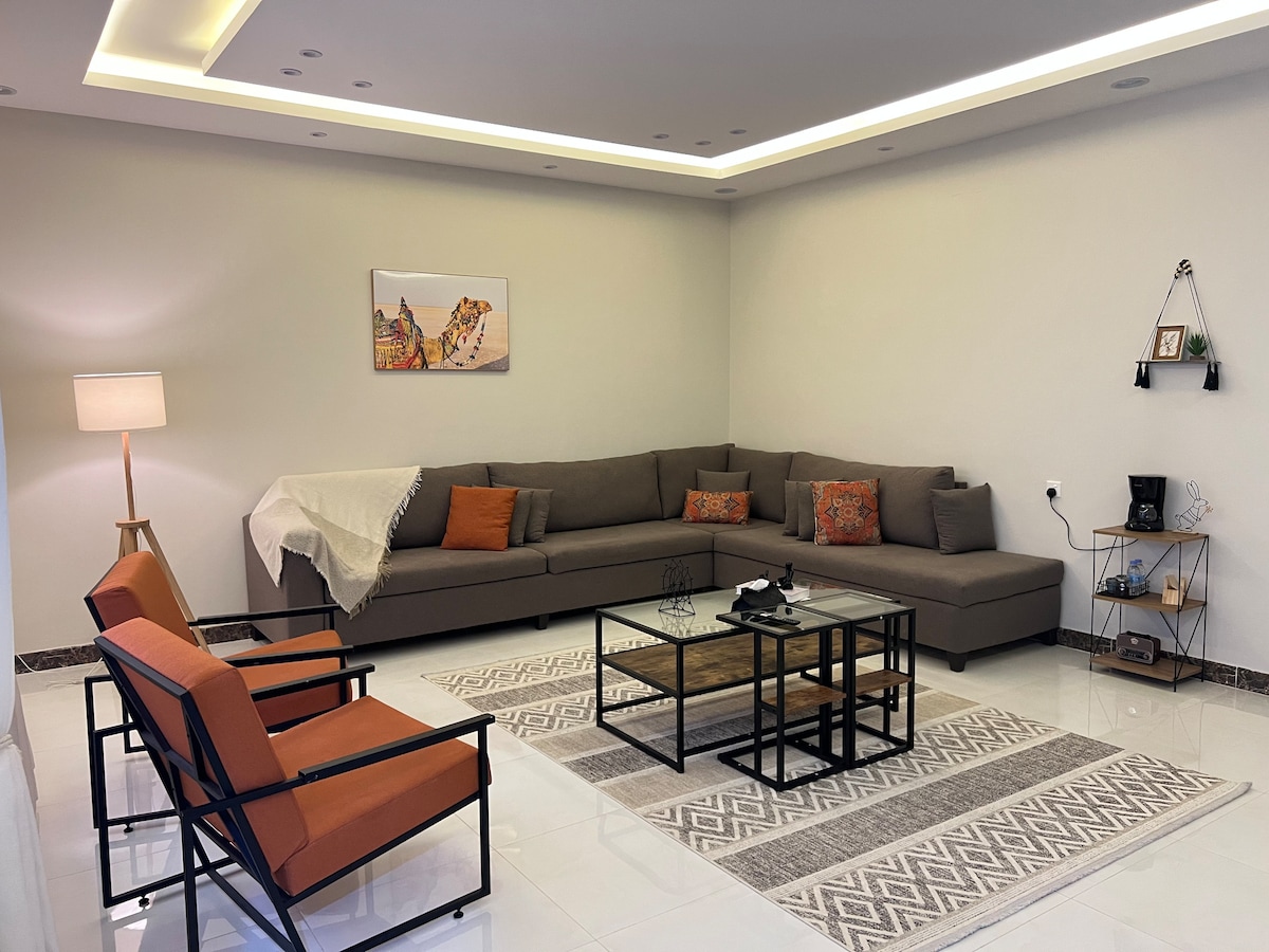在這個高檔安靜的地方享受完全隱私和自助。這個地方是一棟小別墅,有私家車入口,電子門有一個小庭院。這個地方由一個優雅的客廳組成,配有智慧螢幕、網路和咖啡角,您的心情也經過改造。主臥室配有獨立浴室(提供額外2張單人牀墊) ,以及配備微波爐、烤箱和冰箱的廚房。還有另一間浴室。位置非常靠近Abha機場,位於Abha市和週四之間。商場距離Al-Rashed商場僅7公斤