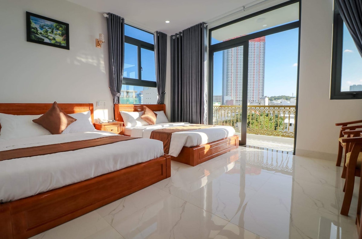 我們的豪華雙人海景客房配有標準雙人牀,提供極致的舒適和放鬆。 Prague NhaTrang是一家迷人現代的飯店,位於越南充滿活力的沿海城市NhaTrang。 NhaTrang以其迷人的海灘和豐富的文化而聞名,是休閒和商務旅客的熱門目的地。 飯店提供舒適、便利和優質服務的理想融合,是該地區遊客的首選