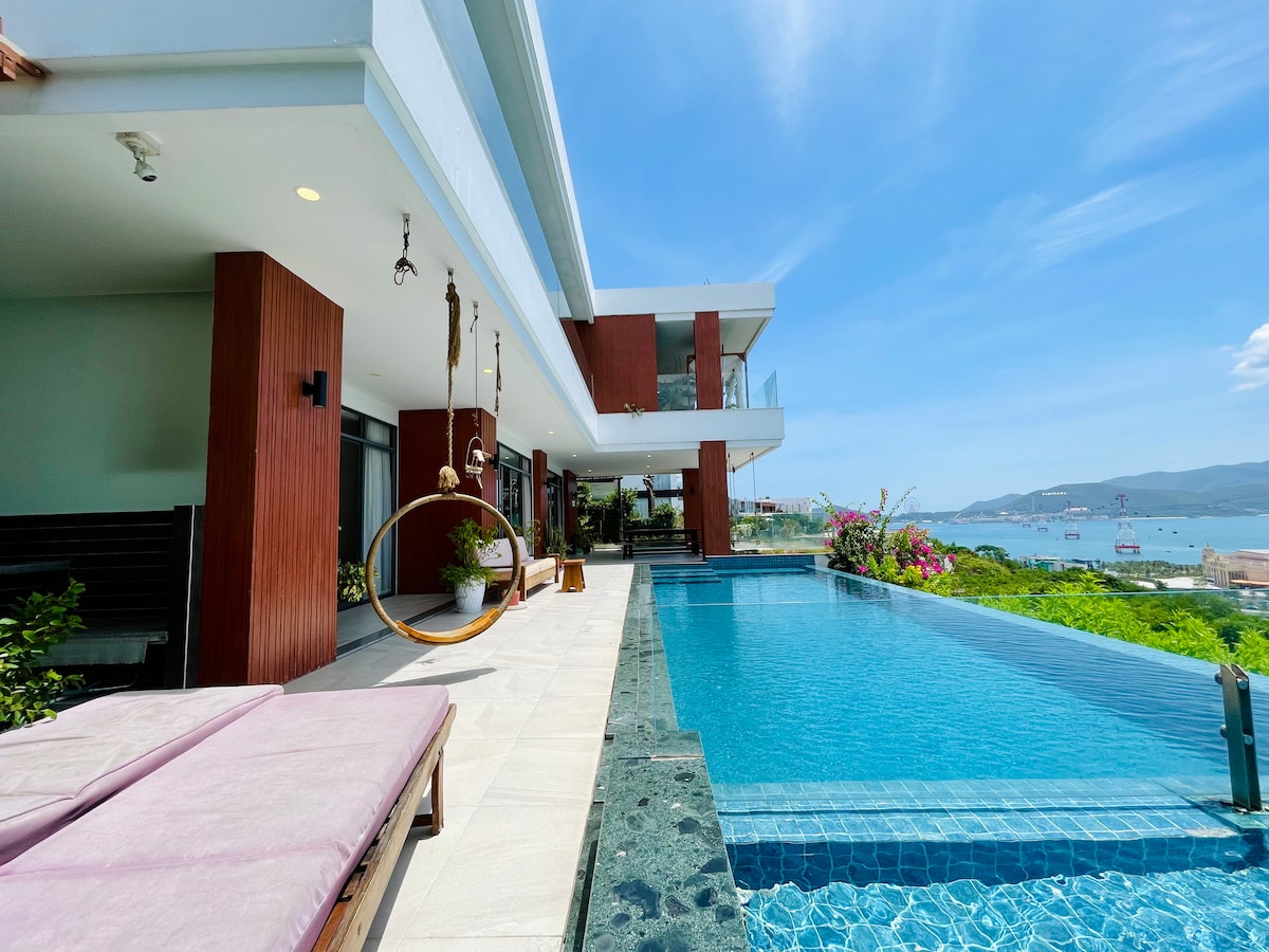 VENITY VILLA Breeze是一座寬敞的住宅,建在芽莊最優越的地區的山頂上。 獨特設計的180 °海景4間臥室別墅,配有無邊泳池、屋頂高爾夫球場、燒烤、設備齊全的廚房、電影院/卡拉OK室、桑拿房和蒸汽浴、配備最新設備的現代健身房、配備最新設備的現代健身房、Sonos音響系統是隱居和終極放鬆的絕對定義。