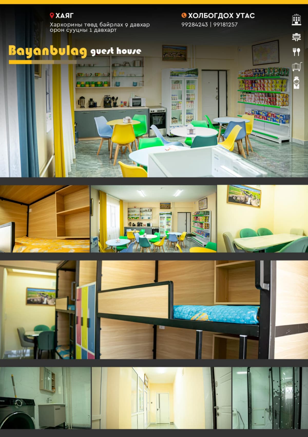 歡迎來到Kharkhorin旅舍!我們有一棟兩層建築,室內設計令人難以置信,房間舒適,餐廳提供絕對美味的菜餚。 當您入住我們的青年旅舍時,您將在我們歷史悠久的Kharkhorin soum (前首都大蒙古帝國)獲得美好的體驗。 我們靠近蒙古帝國的首都Erdene Zuu修道院。 我們的房源內有免費停車位,我們有早餐選擇,祝您住宿愉快!