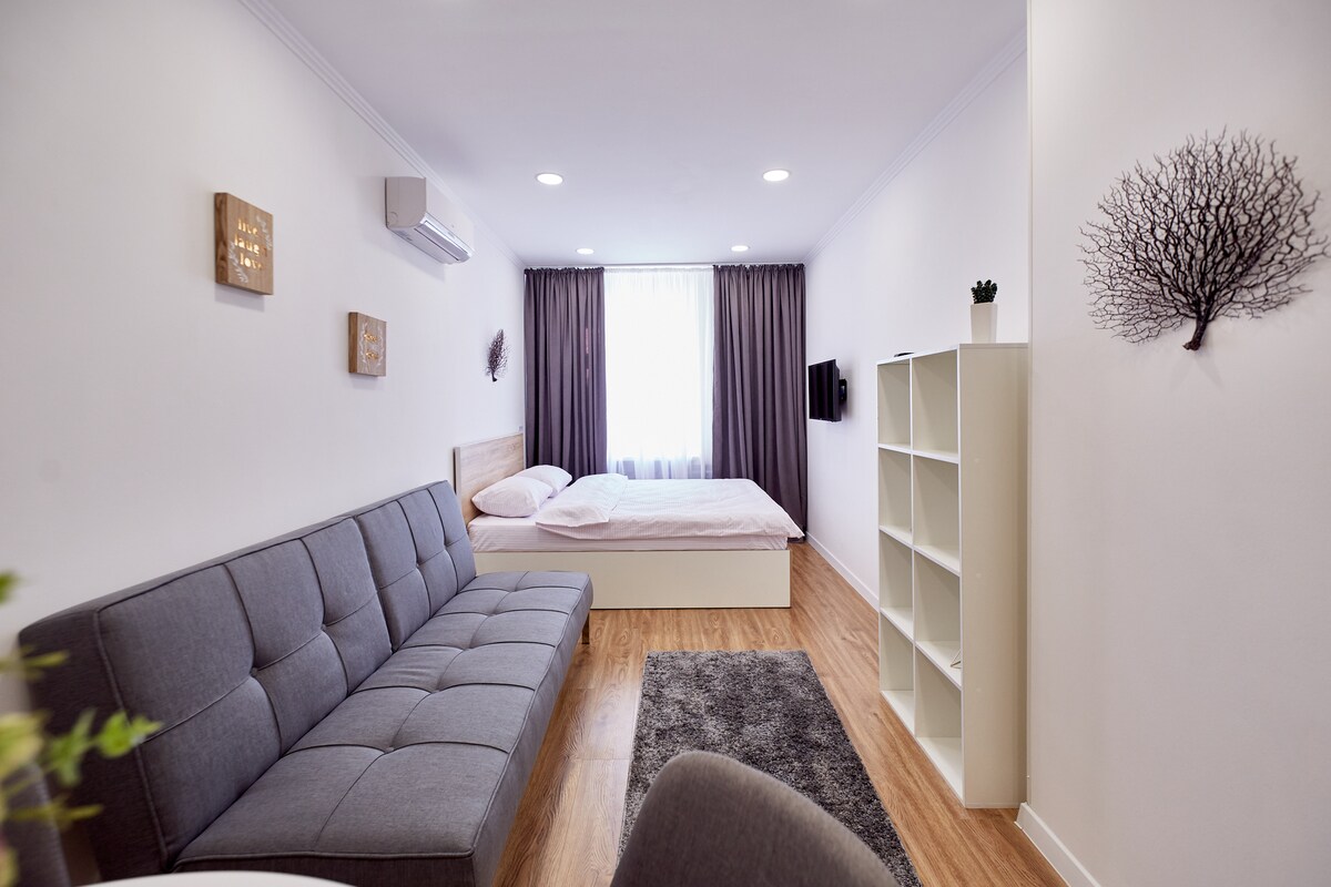 Business-Class Apartments Located in a building with a fully equipped basement. Quiet, gated courtyard with private parking. Modern designer renovation creates a cozy and welcoming atmosphere for a comfortable stay. The apartment features: Comfortable double bed with a premium orthopedic mattress Smart TV High-speed Wi-Fi Fully equipped kitchen For your convenience: Washing machine Iron Hair dryer Complimentary toiletries 🚭 Smoking is strictly prohibited.