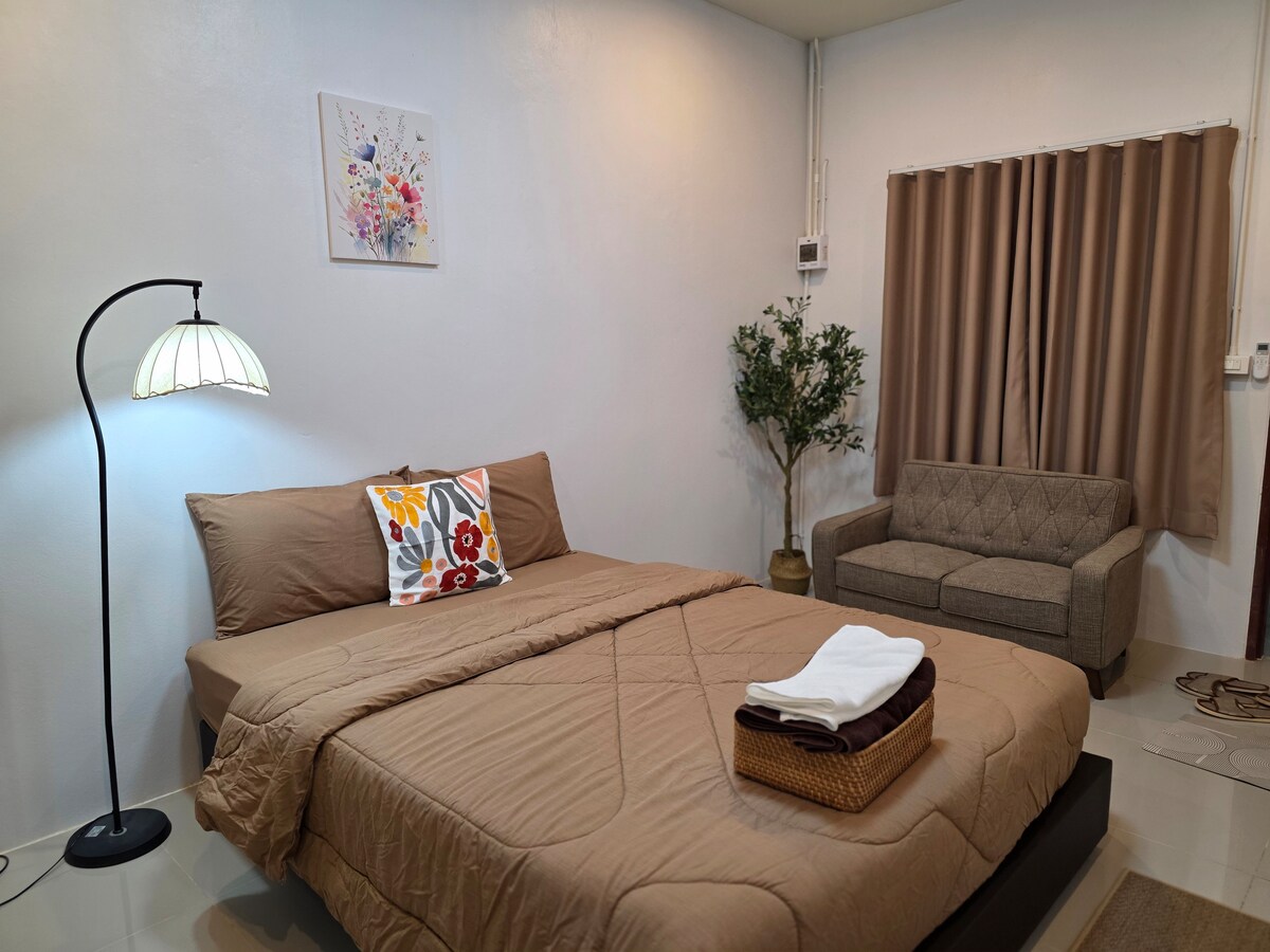 🏡🏡房子位置優越。周圍有 🛒 7-11、晨市(50公尺) 💪舒適按摩(100公尺) 🥟煮茶點心(100公尺) 5分鐘即可抵達: 🛒李花園 🛒 Central Festival 🛒 Makro 🛒綠色夜市 🛒東南亞夜市 🚌 面包車和巴士站 彈性入住和退房。 (提前入住需提前詢問) 在我安靜的住宿地點放鬆身心。 如果您不知道如何管理您在合艾的計劃,請讓我成為您的助手。❤️