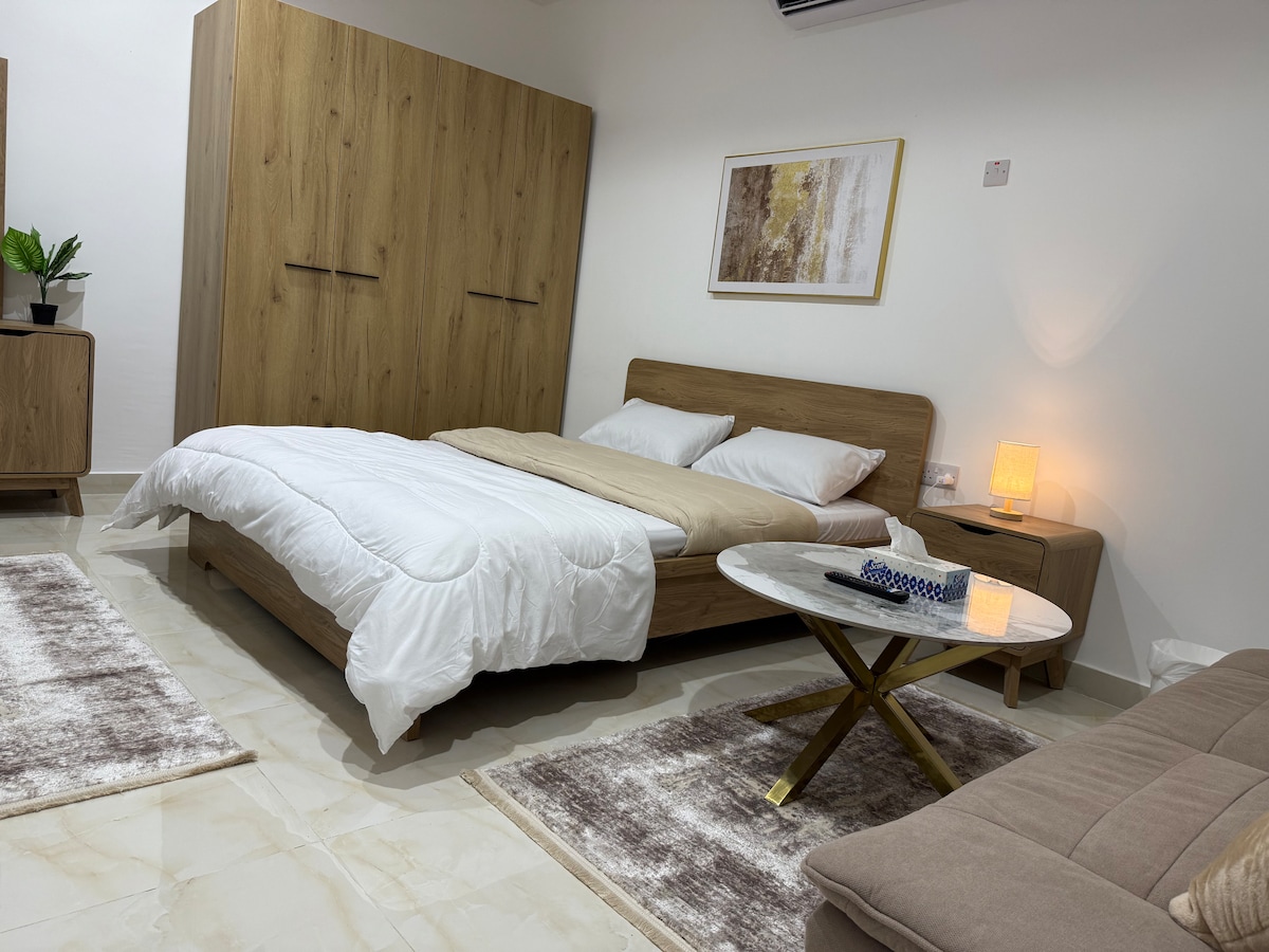 靠近亞斯島和機場的現代套房公寓! 入住時尚套房公寓,距離亞斯島和阿布扎比機場僅幾分鐘路程。 步行即可抵達巴士站、餐廳和大賣場。 享受舒適、設備齊全的空間,配有舒適的加大雙人床、小廚房、快速Wi-Fi和大型智慧電視。 非常適合商務或休閒旅行,前往亞斯島、阿布達比機場、阿布達比市中心等地都很方便。 位於安全、安靜的區域,住宿愉快。