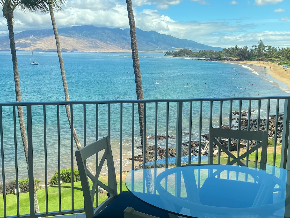 * *預訂前,請閱讀完整詳情 為了減少費用和稅費,總價中不包含160美元的清潔費,並將單獨收取。 這間安靜的茂宜島 Banyan 最高樓層 1 間臥室/1 間浴室公寓包括: •飯店區 - 不受提議的短期租賃禁令影響 •電梯 •分體式空調 •智慧鎖 •海景、西茂宜山脈和哈雷阿卡拉山景 •步行 5 分鐘即可抵達 Kamaole II 海灘 •沙灘裝備 •免費指定停車位 •步行即可抵達餐廳和商店
