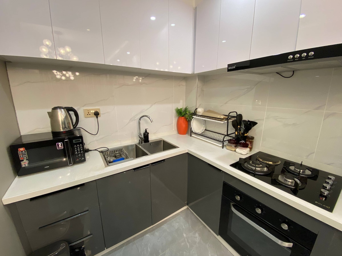 入住這間5星級優雅非洲家園,位於13樓,擁有驚人的現代裝飾,可欣賞Lavington的壯麗景色。配備 85 吋電視,並提供 Netflix、HBO 等串流服務,讓你盡情放鬆。主臥室配有加大雙人床,廚房設備齊全,配有現代化電器,包括咖啡機。享受免費停車位、高速 Wi-Fi、可欣賞日落景觀的陽台,以及健身房、溫水泳池和屋頂花園,全天候保全服務,讓你安心入住。