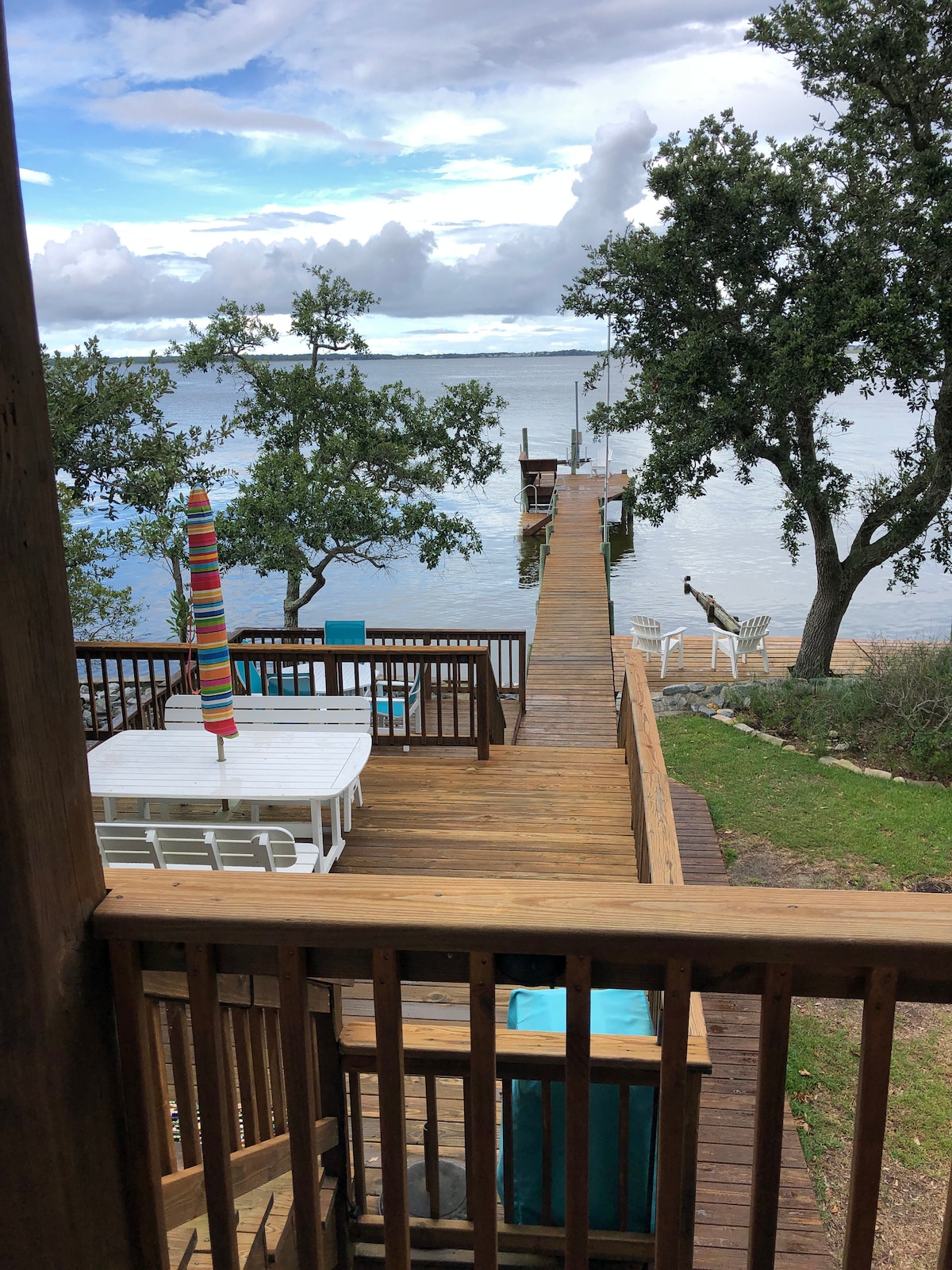 Nestled in this unique and tranquil getaway, overlooking Kitty Hawk Bay, Wake up to the Sunrise over the deck which is one of the highest locations in Colington Harbour. Watch the sunset in the middle of the Albemarle Sound, while enjoying 180 agrees views from the deck. Enjoy the club pool, tennis courts, marina play ground and water front sound park. This 2br 2ba is newly updated with all the comforts of home.