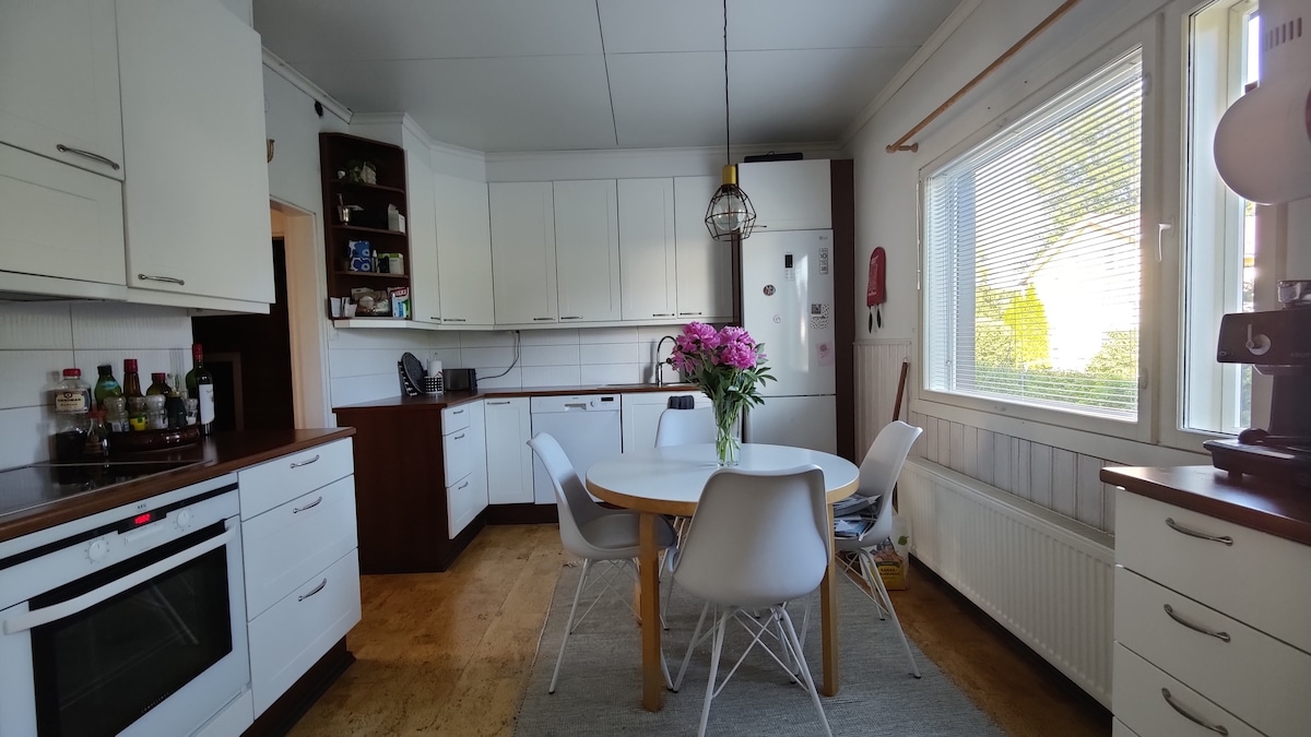 Valoisa ja tilava talo, 5 min rantaan kävellen