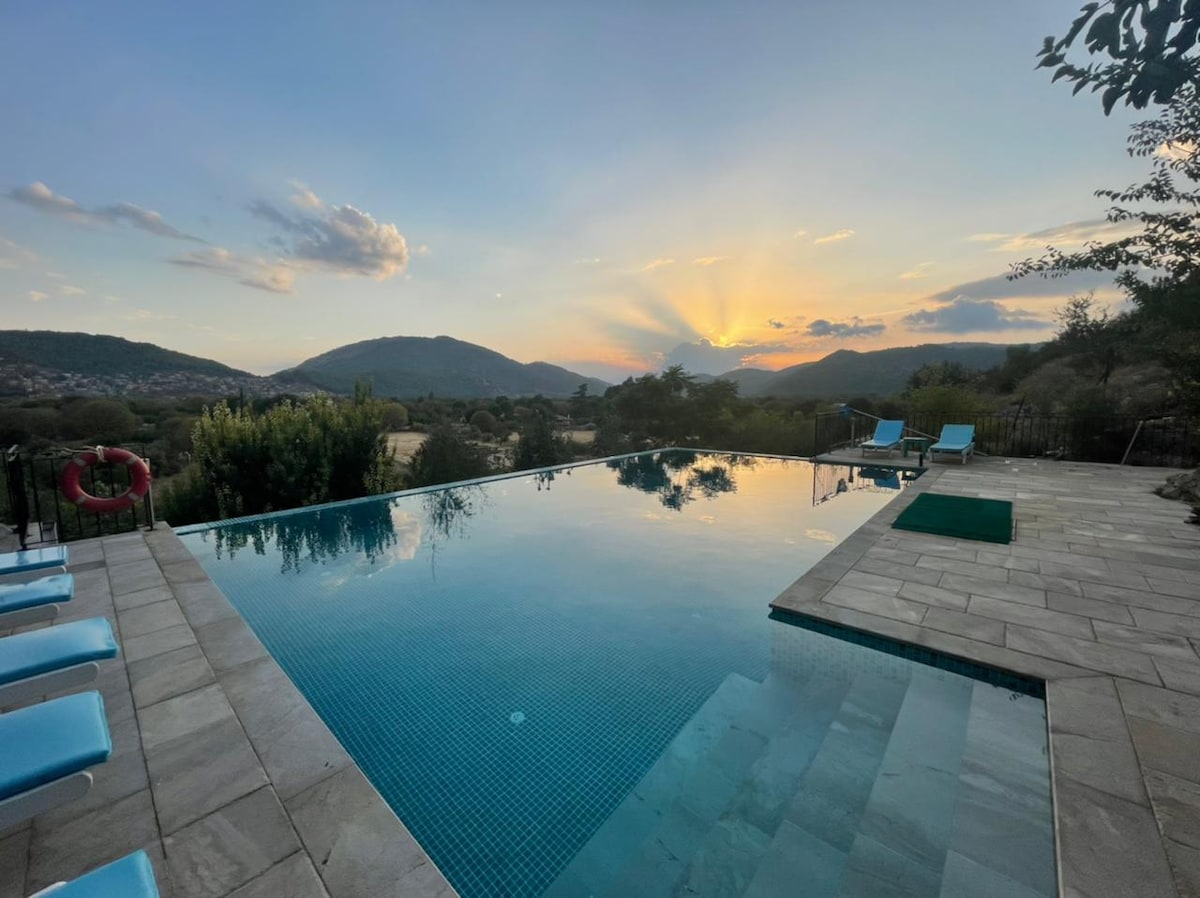 全景Evi可俯瞰卡雅谷的美景,俯瞰幽靈小 鎮。這是一個原始的土耳其農場房屋,完全恢復到高規格,具有原始功能和當代裝置。 從大理石套房浴室到休息室的美麗玻璃牆,全景簡直是驚人的。 每間寬敞的臥室都有一個陽臺。它擁有巨大的玻璃鑲嵌無限遊泳池,讓您感覺自己在山谷中遊泳,極佳的泳池邊空間和許多陰影。