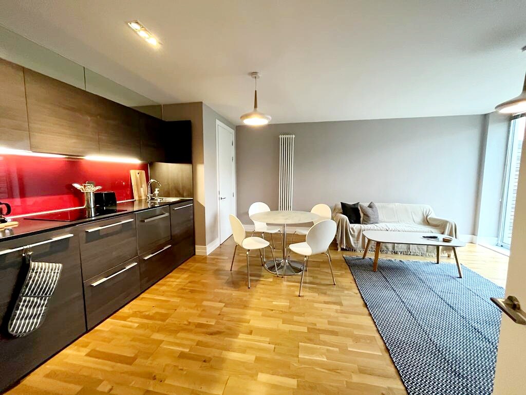 Refurbished 1-bedroom apartment for up to 4 guests with a large balcony overlooking the river and city skyline. Relax in the open-plan lounge/kitchen, cook with full-size appliances, or work from the dedicated desk area. King bedroom plus sofa bed in the living space. Secure on-site parking and lift access make arrivals easy, with Leicester’s shops, dining, and historic sights close by.