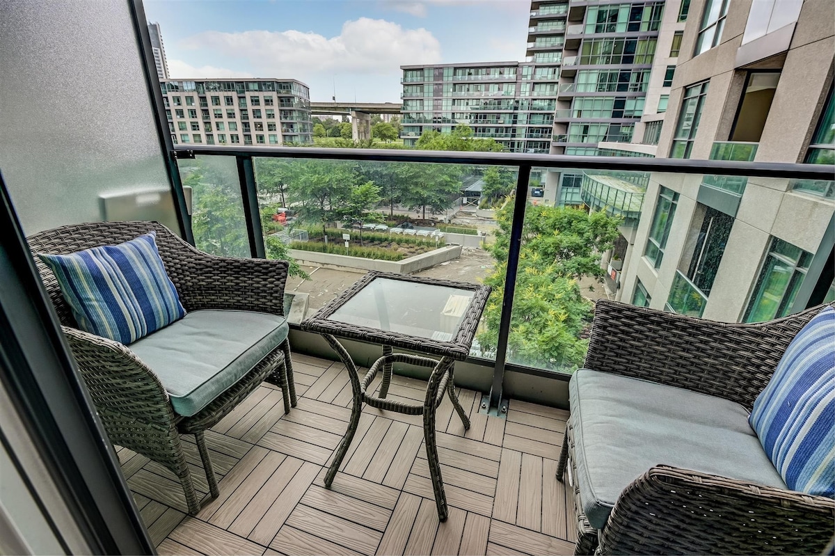 寬敞的1牀+ DEN現代公寓,坐落在市中心。 距離湖泊、公園、休閒中心僅幾步之遙。 步行即可抵達加拿大國家電視塔、聯合車站、羅傑斯中心、會議中心。 → 高速WIFI非常適合在家工作、視訊通話和串流 → 約620平方英尺/57平方公尺 → 專屬工作空間 → 60英寸QLED電視 → *全新2024年*設備齊全的廚房,配備廚具 → 步行即可抵達餐廳和夜生活 → 距離雜貨店、酒類專賣店和城市交通網路( 94 Transit Score )僅幾分鐘路程