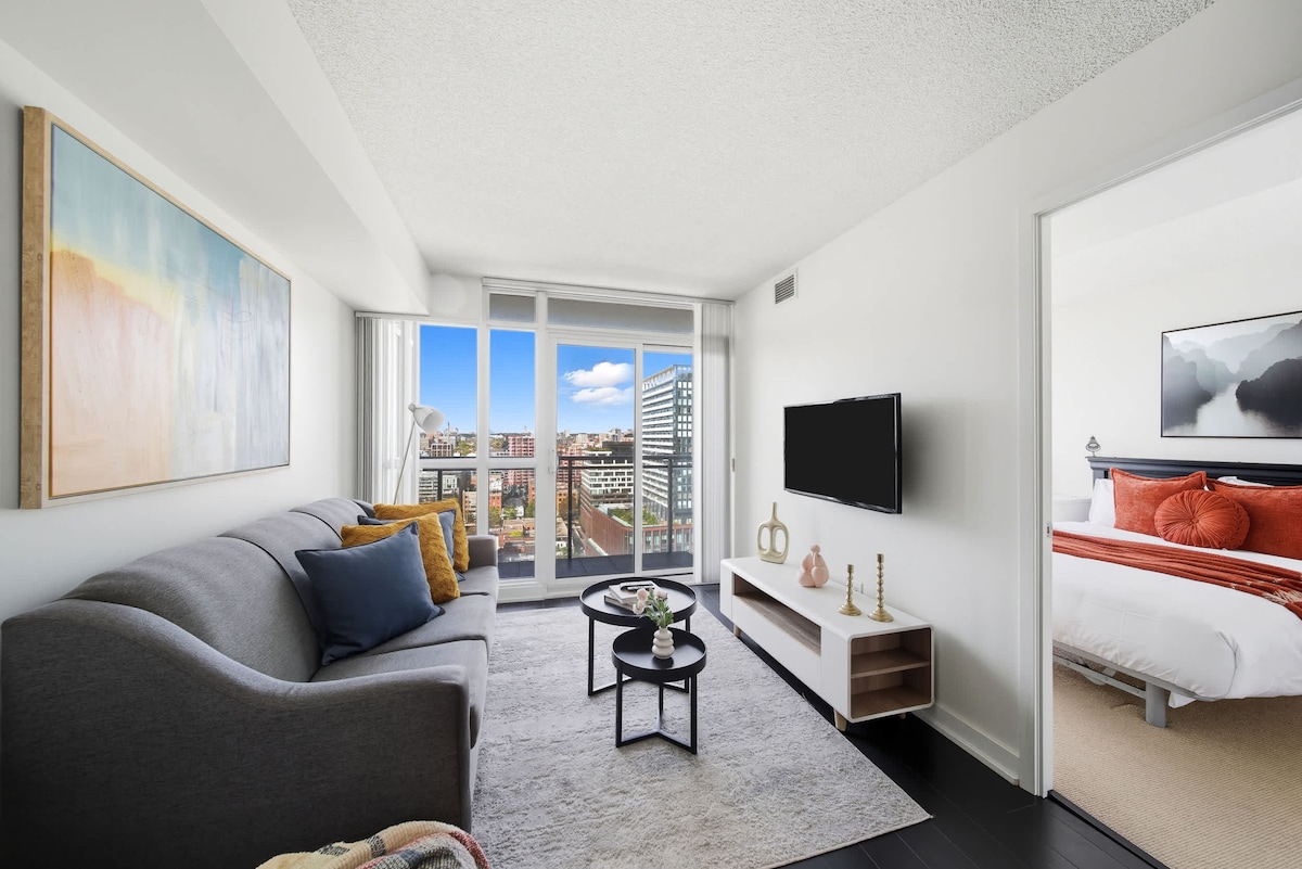 舒適的1臥室套房,步行即可抵達地鐵,城市景觀!