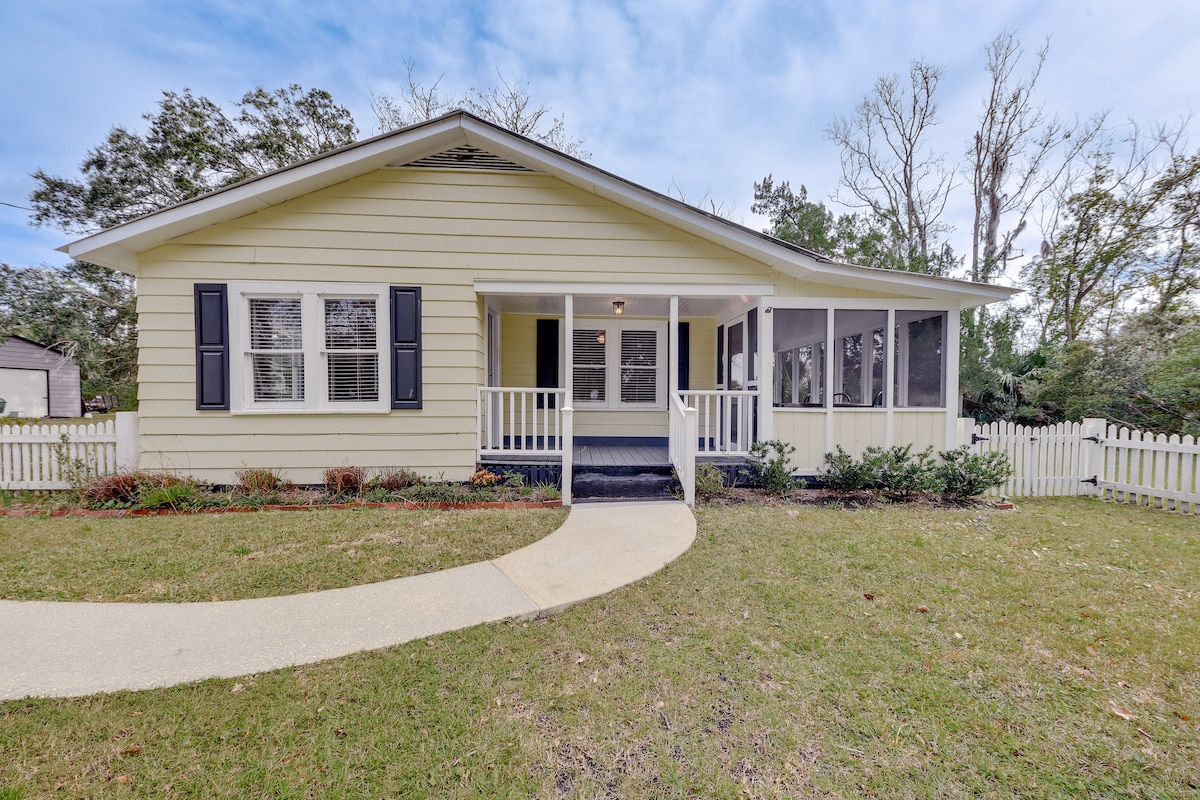Enjoy this 2 bedroom/2bath home in a quaint neighborhood nestled in historical St. Marys, Georgia. Screened back porch, ceiling fans, sitting and a dining table sits 6-8 people. Porch overlooks a great back yard, with a gas grill. IN 3 blocks you find the Howard Gilman waterfront Park. Transportation to Cumberland Island,hiking, tours, swimming & beachcombing, biking, camping, Kayaking, fishing, and other activities.
