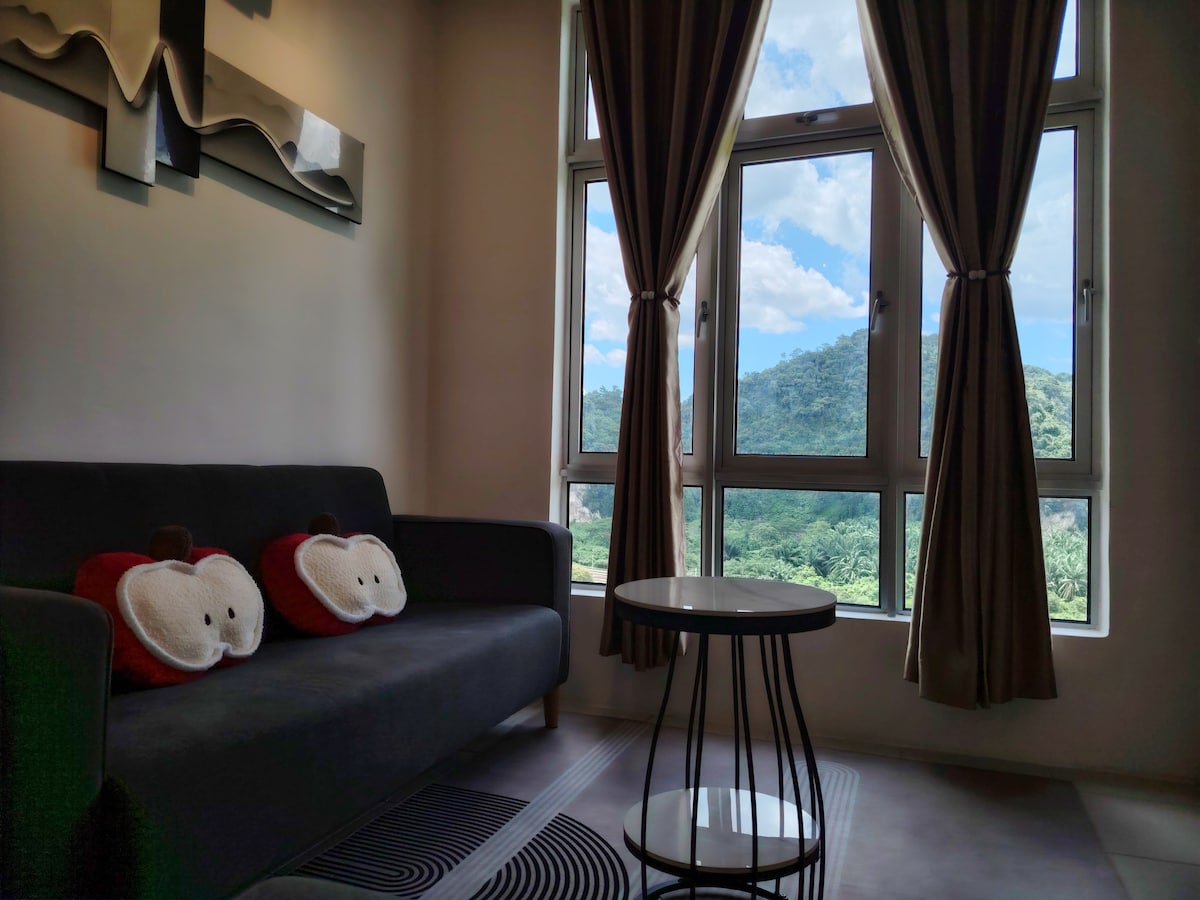 Welcome to MyUrbanGetaway, our 2nd & boldest listing yet. Located smack center in bustling Tanah Rata, we assure you the best highland experience this little town of ours has to offer. 5 floors up in the Cameron Fair mall complex, housing the Avillion Hotel as well as eateries like Old Town White Coffee and the delightful Naux Pastry Cafe, treat yourself to a posh yet comfy retreat with our newly renovated and fully stocked 2 bedroom unit, perfect for plant-lovers and boho-chic enthusiasts.