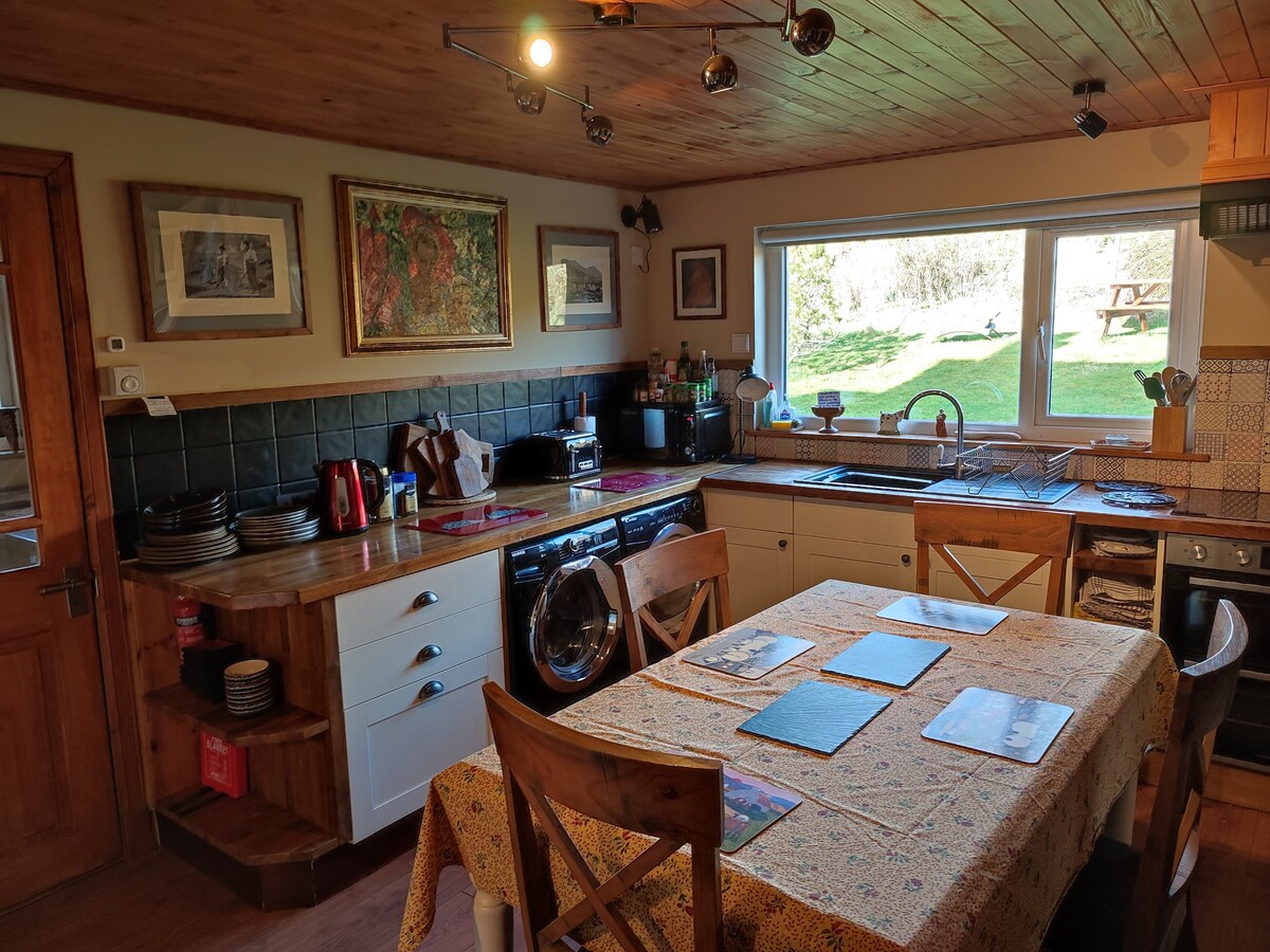 Caolas Gallery的Wee Wooden Yurt是一棟綠色屋頂的原始木製圓屋,透過圖片窗口可以欣賞到斯卡爾佩島和東南哈里斯島的海景。 設施包括中央圓頂屋頂窗戶、浴室、廚房、舒適的椅子和燃木爐,當然還有雙人床。 房源享有南方景觀,自然光線充足,隔熱良好,溫馨舒適