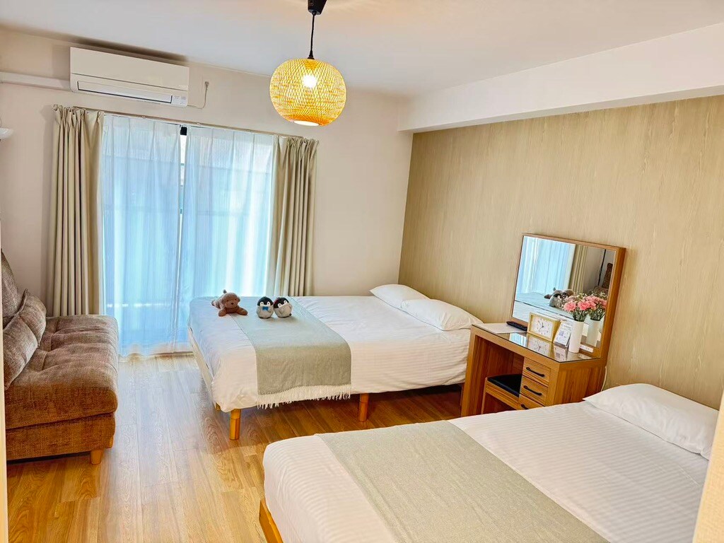 ①大家好,我是房东Bi,欢迎来到我的airbnb,在日本的旅行住宿请放心交给我们。 我与工作人员也24小时在线,当房间出现问题、或者物品使用完欠缺时,工作人员会第一时间为您补上。 旅行期间,有疑虑的地方都可以告诉工作人员,及时的为您解决旅行困难。 希望我的Airbnb能带给您好服务、安全安心、干净、美好的旅行回忆 ②房间位于大阪市的美食腹地、吃货天堂的黑门市场步行2分钟。日本桥地铁站步行3分钟。 ③面积大小为43m² 的一室一厅房间,房间舒适宽敞,很有乐趣。 ④房内的卧室是两张双人床,客厅有一张餐桌,适合2人~4人的顾客入住。 「双人床*2」 ⑤房内洗漱用品均为知名品牌。 电器物品使用松下品牌 拖鞋、枕头、被褥都使用日本家居品牌MUJI(无印良品)。 ⑥我们也考虑境外旅行大家旅居的舒适感。 「所有的床垫都采用高标准高品质,自己的清扫团队也保证大家房间入住时,房间干净整洁。」