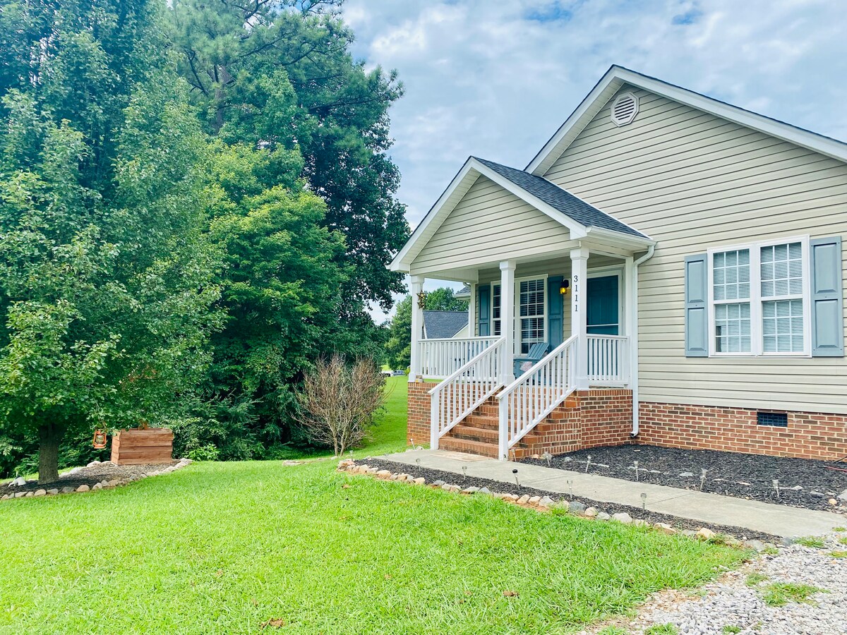 坐落在鄉間,環境寧靜,您可以聽到鳥鳴聲,看到我們美麗的花朵,並享受坐在前廊和放鬆身心。 我們最初是一家名為Antler & Oak的民宿,位於富蘭克林郡,位於羅利以北和維克森林以東。 這個地方有100年歷史,翻新了前面部分以供房客使用。 房客可以使用整個空間,包括全套廚房、客廳、2間臥室和2間半浴室。