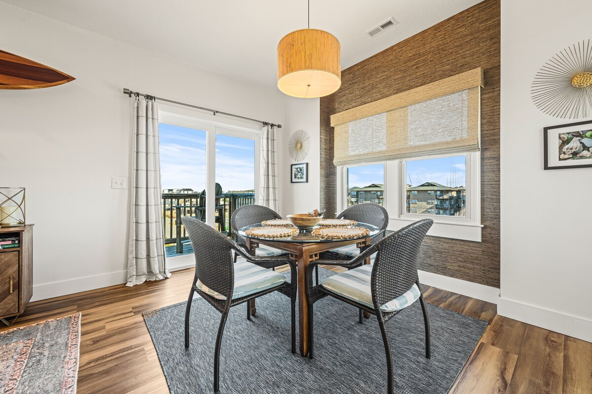 位於北卡羅萊納州外灘的華麗、翻新、安靜的海濱公寓。最好的一切-令人驚嘆的日落和健全的設施,可供游泳、水上運動和釣魚。街對面有華麗的海灘(步行0.4英里或免費停車)。步行、騎自行車或划獨木舟前往Duck商店、木板步道和餐廳(約一英里)。令人驚嘆的安靜位置,可前往任何地方。美麗的景觀、可調式振動床和豪華床墊、水療浴室、室內泳池、網球場/匹克球、碼頭和海灘和聲音玩具!