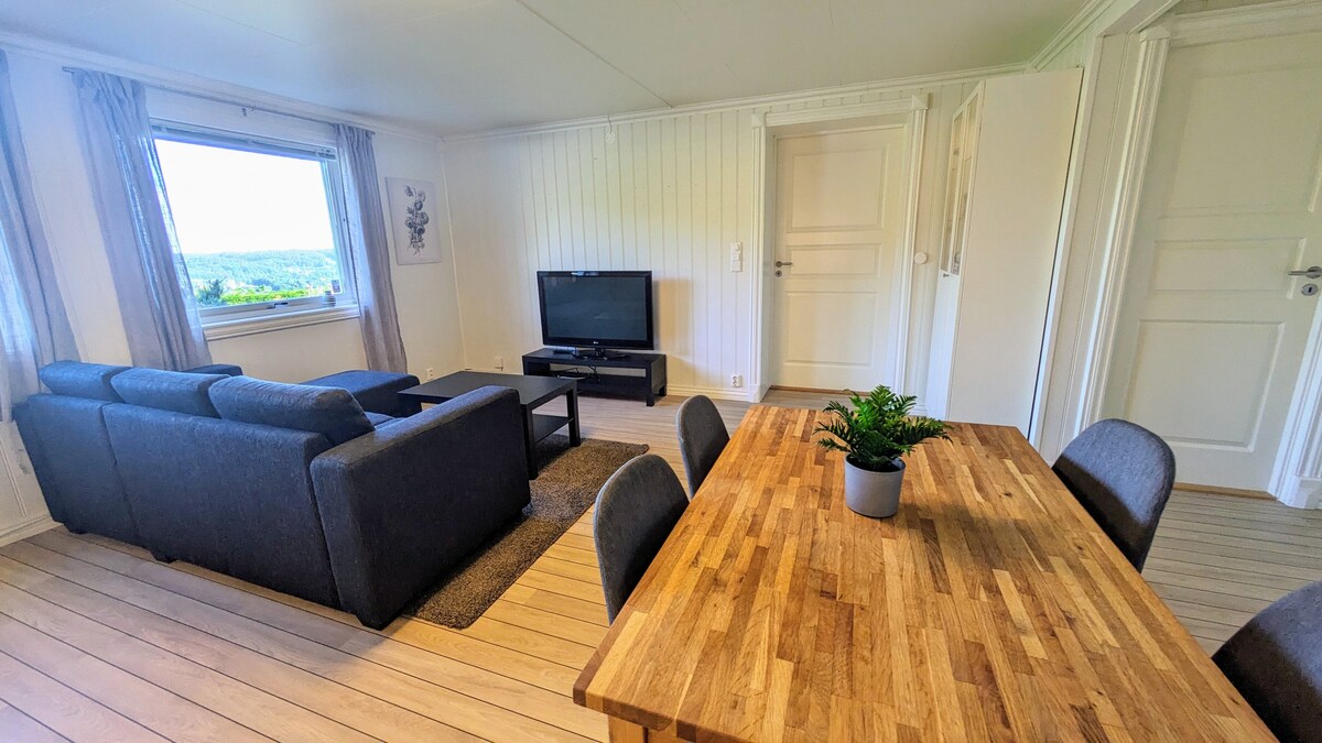 想參觀克里斯蒂安桑動物園、工作、打高爾夫、釣魚或在 Sørlandet 度假嗎? 大型、農村、設備精良的公寓、2間臥室、可供6人入住。 有多個免費停車位和電動車充電站。距離動物園 20 分鐘,距離基耶維克機場 (Kjevik Airport) 15 分鐘,距離挪威最長的沙灘哈姆雷桑登 (Hamresanden) 17 分鐘,距離可搭乘渡輪和火車的基督山 (Kristiansand) 30 分鐘。 安靜,有良好的露臺和Tovdalselva河的景觀。 步行即可抵達游泳和釣魚的地方