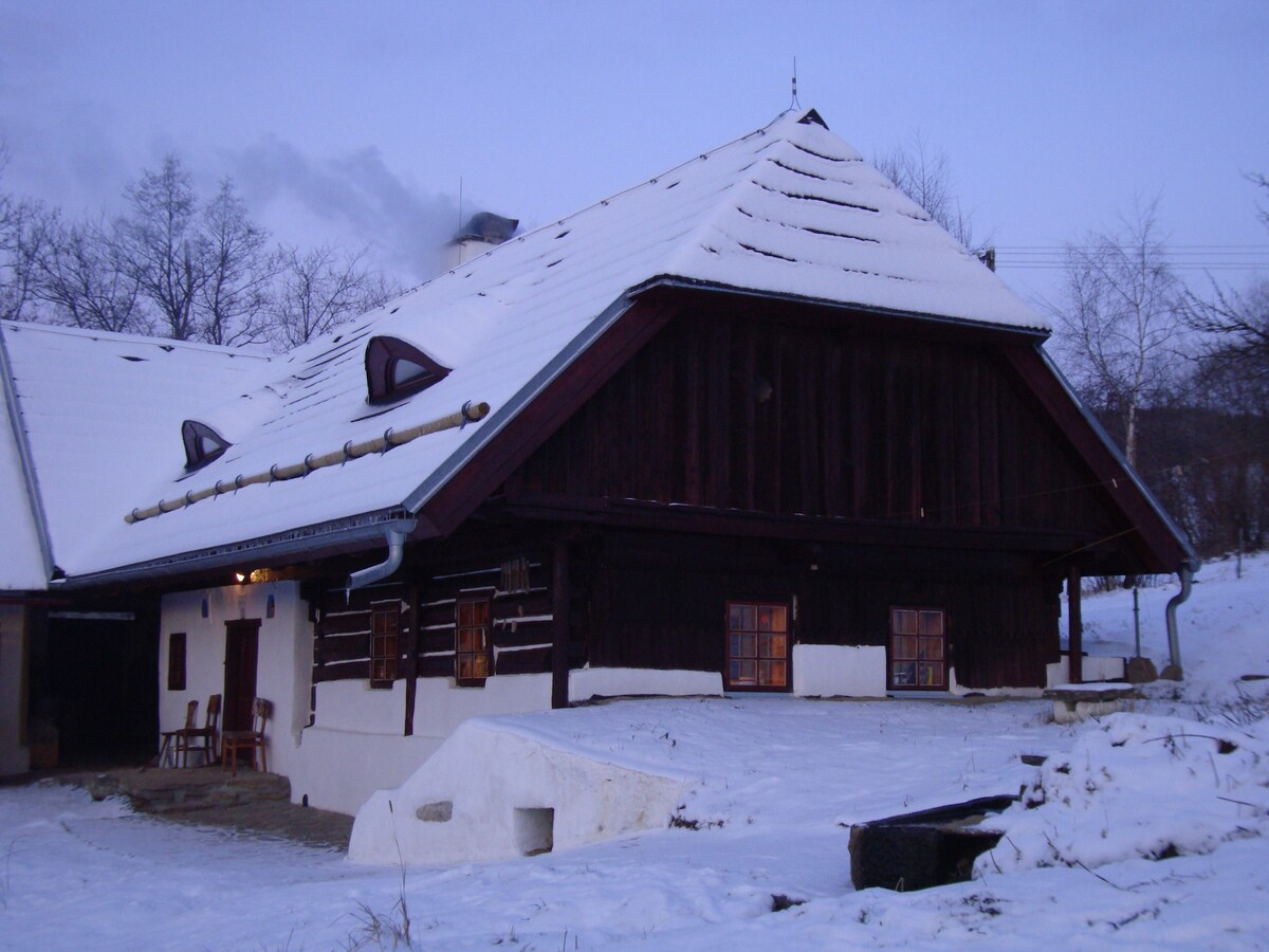 一間神奇的原始木製Šumava小屋,建於1852年-4 + kk,位置半隱蔽。房子有一個石頭地基和一個有長凳和桌子的有蓋門廊,從地窖可以看到海拔1362公尺的Boubín美景,3間臥室,一個石磚爐,帶有將小屋加熱到散熱器的交換器,一個電鍋爐,時尚的古董家具。 住宿是回到我們祖先的時代...