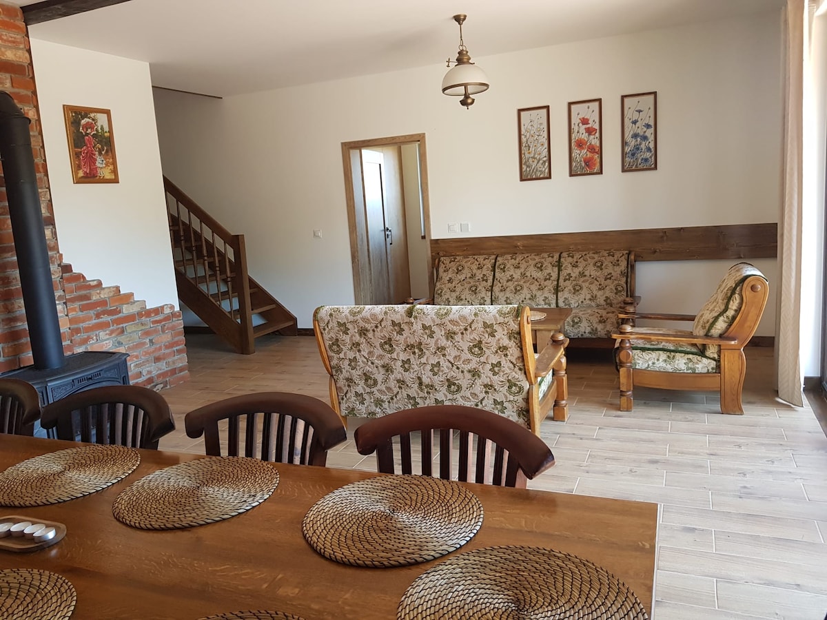 Hereczówka to wyjątkowe miejsce , gdzie wyciszysz się od zgiełku miasta. Widoki z tarasu pozwolą Ci oderwać się od rzeczywistości. Dom jest przestronny, posiada 3 sypialnie, 2 łazienki. W przestronnym salonie znajduje się duży, dębowy stół dla 10 osób, wygodne sofy i ława. Telewizja satelitarna i wifi pozwoli Ci na kontakt ze światem, jeśli tego zapragniesz:}