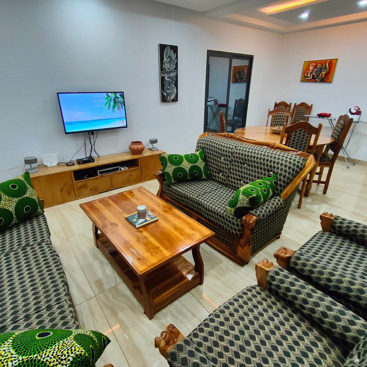 在Kpalimé出租的新公寓: 我們的新公寓距離國道50公尺,提供豪華客廳、3間寬敞的空調臥室、戶外男朋友、露臺,可輕鬆前往停機坪路。 公寓配備了所有廚房設施,讓您感覺像家一般舒適。 我們有24小時保安可供房客使用。 你的滿意度會得到保證