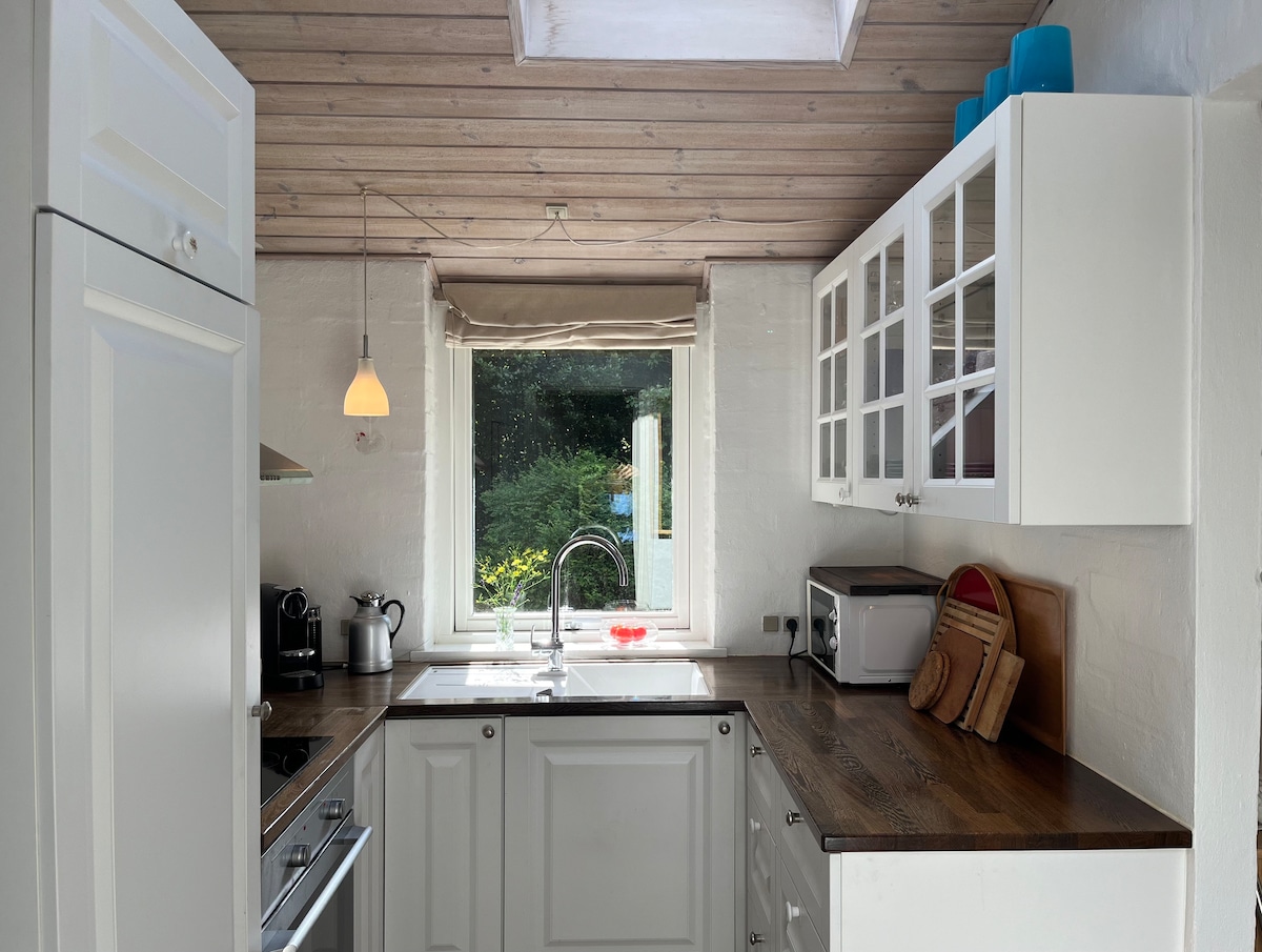 Wake up in a quiet scenic area overlooking Sletterhage Lighthouse and Aarhus Bay. The residence is a cottage next to our house. Appr. 55 sqm with 3 living/bedrooms, a combined hallway, kitchen and sitting room and a bathroom. We are located close to Ebeltoft and Mols Bjerge National Park. You will love my home because of tranquility and peace, cosiness, prospects. The property is good for couples and sole adventurer. Ideal for hikes in Helgenæs' beautiful scenery and glacial landscape.