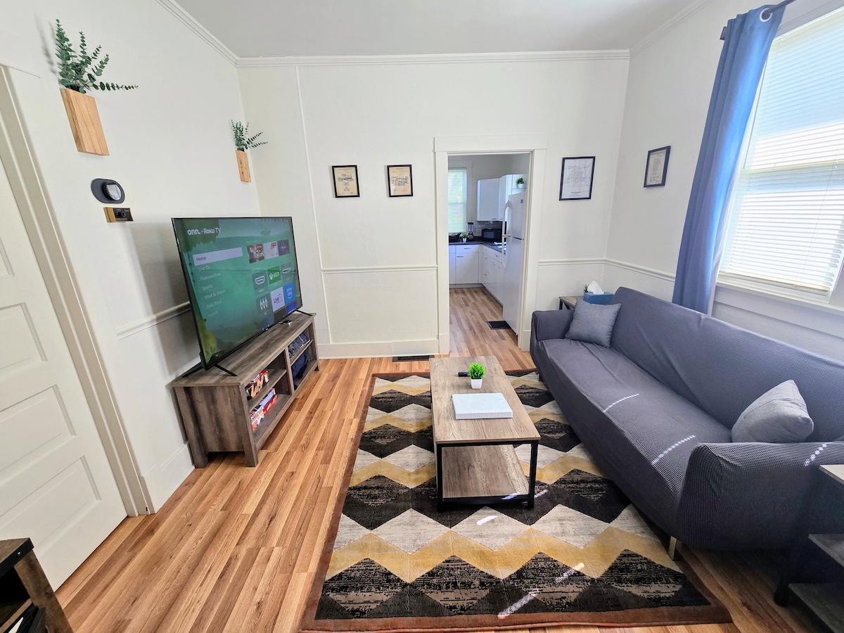 全新、現代化、Loft空間,可供三人舒適入住。 享受設備齊全的廚房,配備全尺寸電器、暖氣地暖和咖啡與茶水區。 步行即可抵達市中心、Amtrak車站或諾克斯,享受外出用餐和購物。 設施包括無線網路、密碼門、街外停車位和戶外用餐區。 注意:閣樓有一張大床,主樓有一張大沙發床;窗戶空調僅供溫暖天氣使用。 室外監視錄影器,讓您安心入住。 私人非路邊停車位。