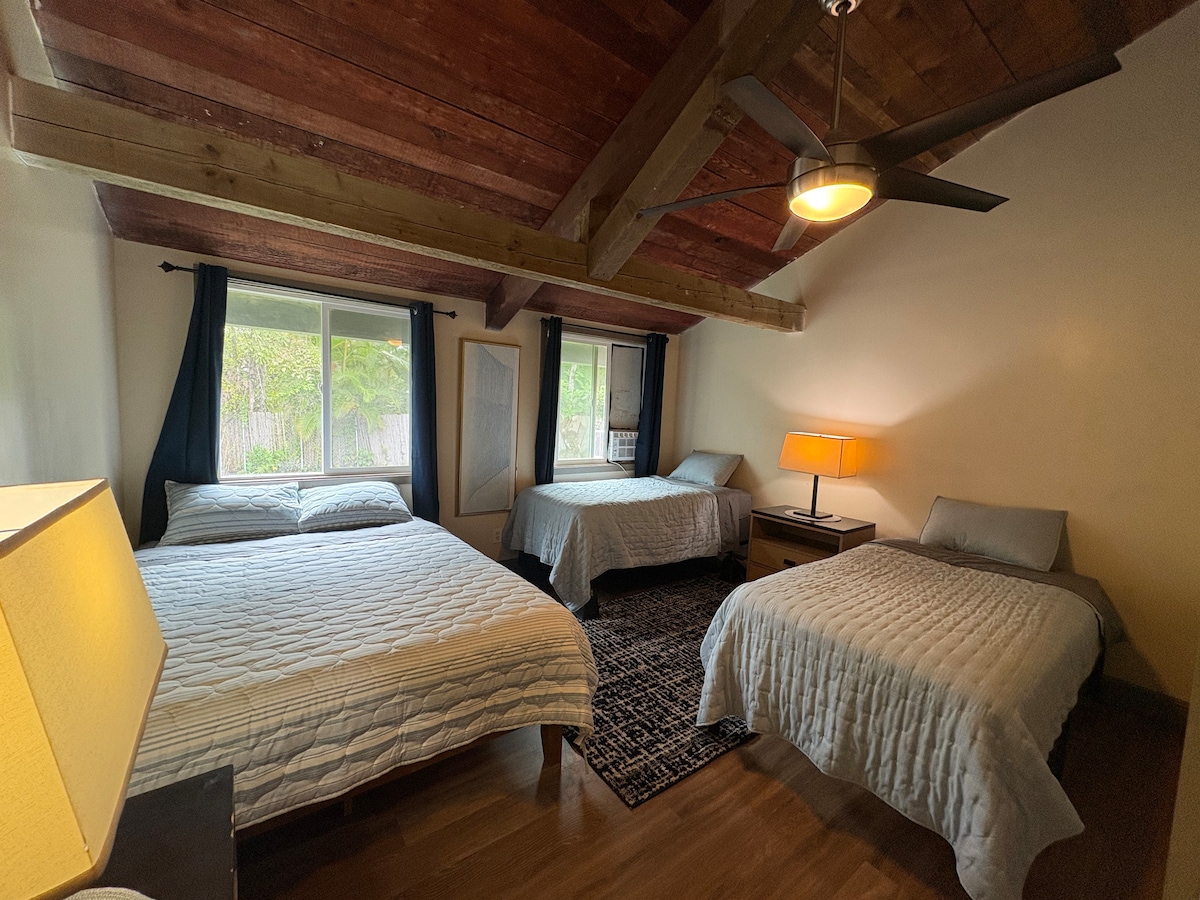 Legal Nightly Vacation Rental (No 30-day contracts) A cozy, island-style unit with a loft bed, perfect for an authentic Hawaiian getaway. The unit includes High speed WiFi, 65 inch Smart TV, Split unit AC, sauna, an outdoor shower, an outdoor gym, a sun deck, and private access. Located within walking distance to famous Waimea Bay and other beautiful spots, this space offers convenience, comfort, and island charm. **Please note bookings after may 15th the sauna will be removed for renovations!