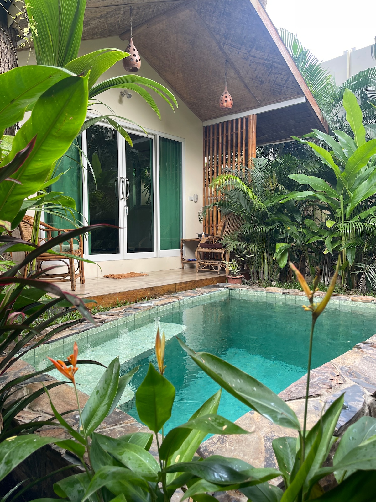 Suan Residence is the right place for nature-loving people who want to relax. The beach & city center are at waling distance (~7 minutes). Each bungalow is private so you can get quality time with the one you love. You will wake up with the birds singing and take your morning coffee surrounded by mountains and coconut trees. During the evening, you can watch stunning sunsets from your swimming pool. It is an eco-friendly project. We decided no to put AC but insulation instead to reduce the heat.